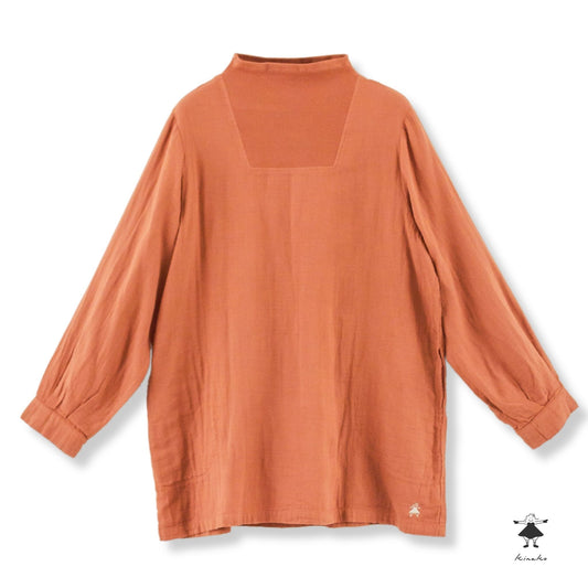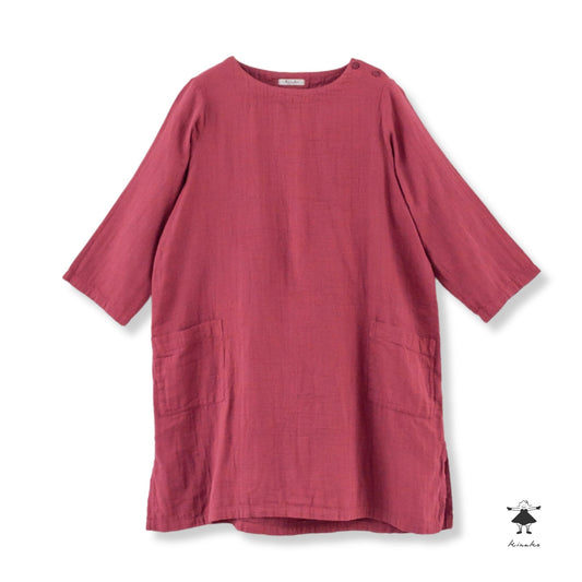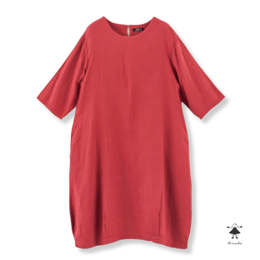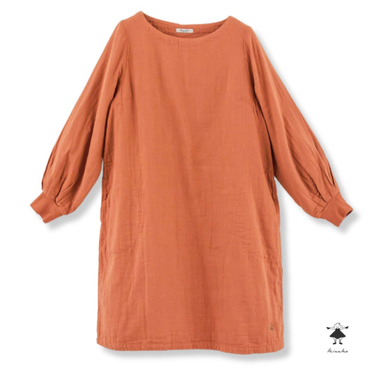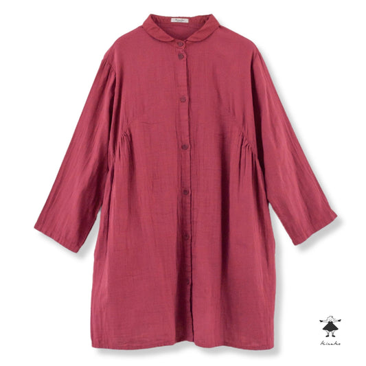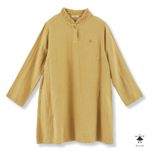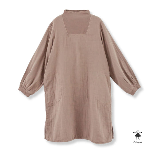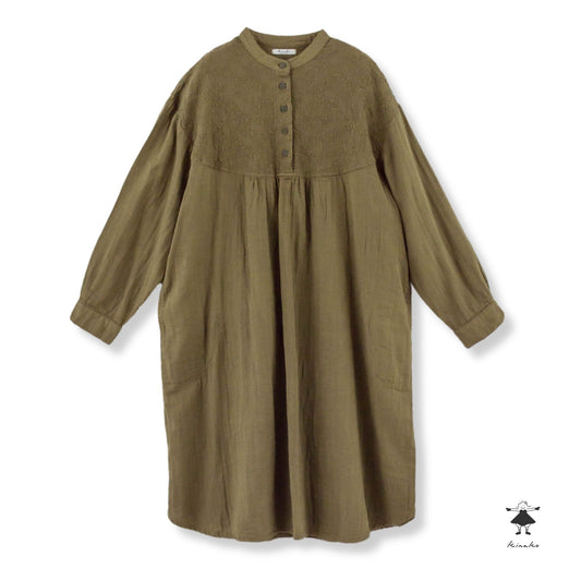 売り切れダブルガーゼ胸切替バンドカラーワンピース