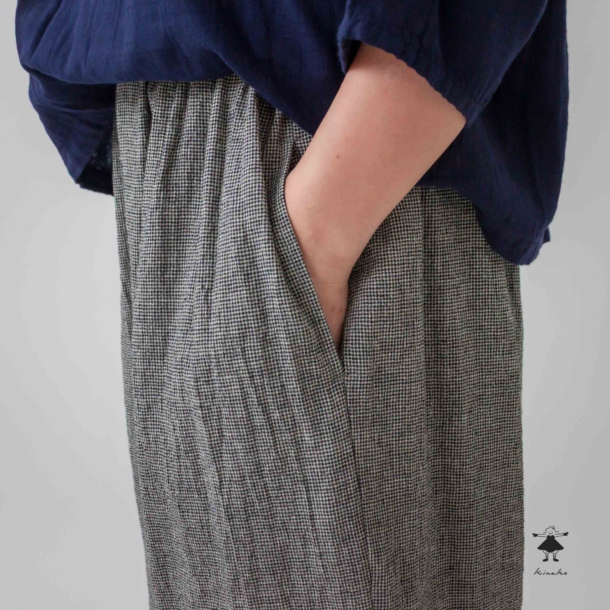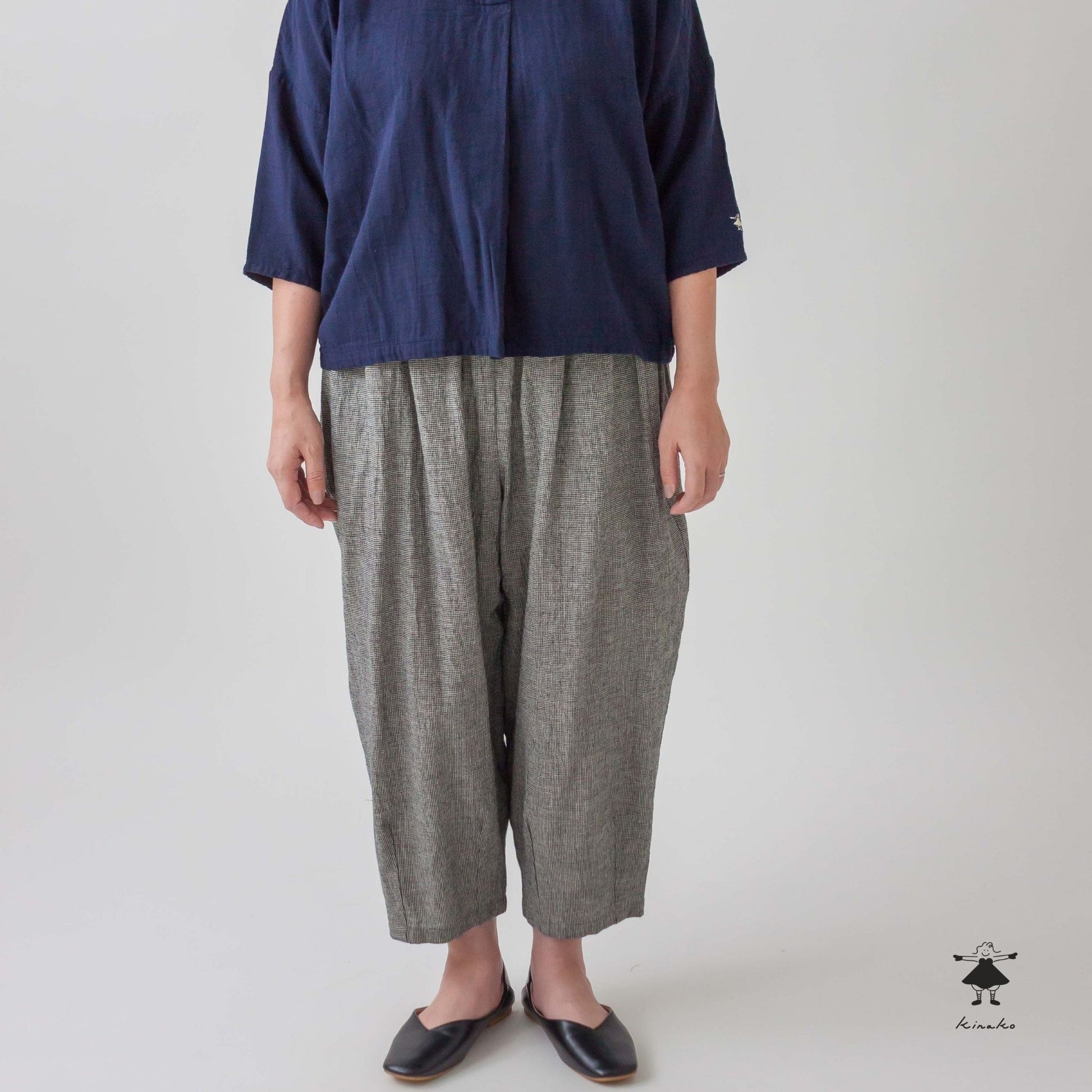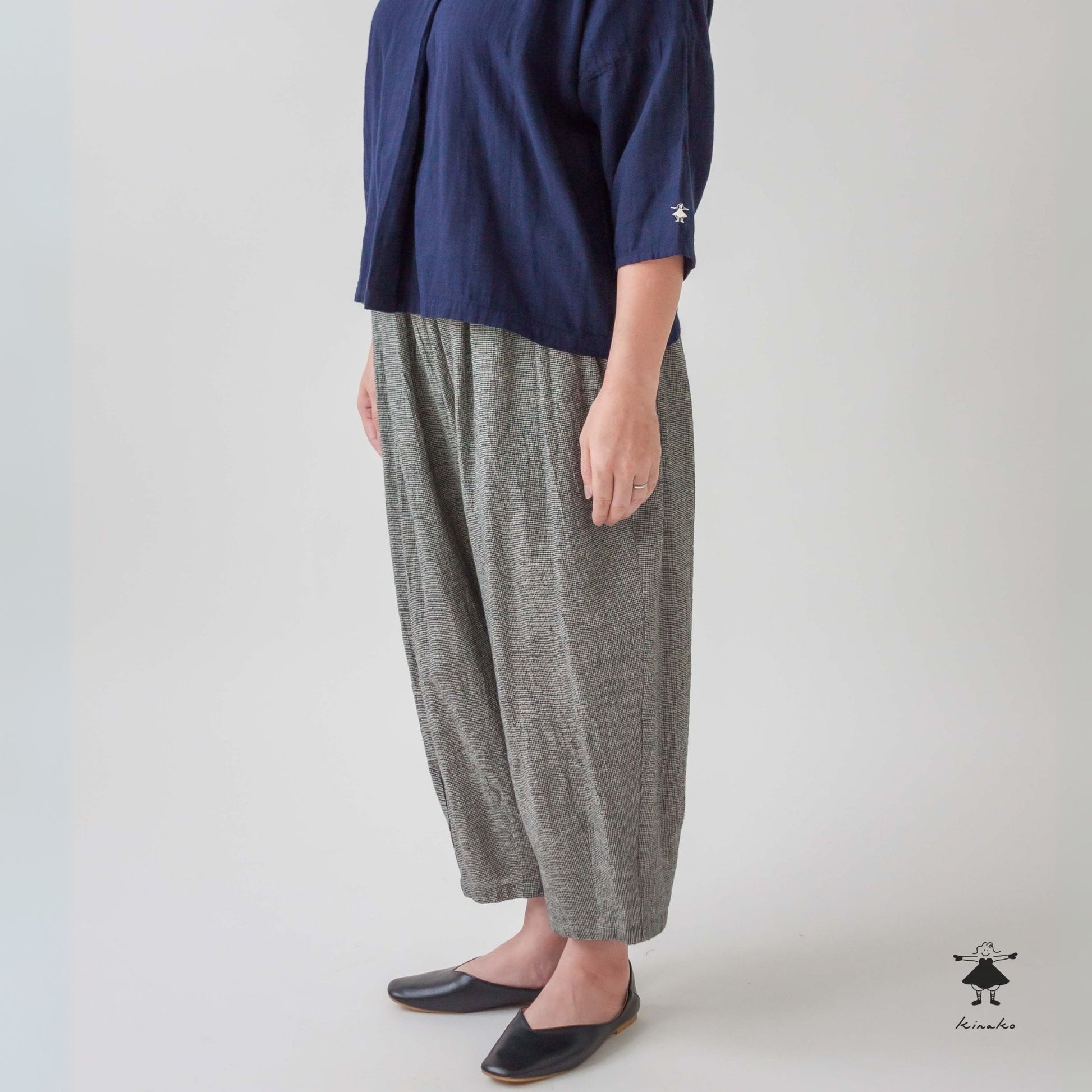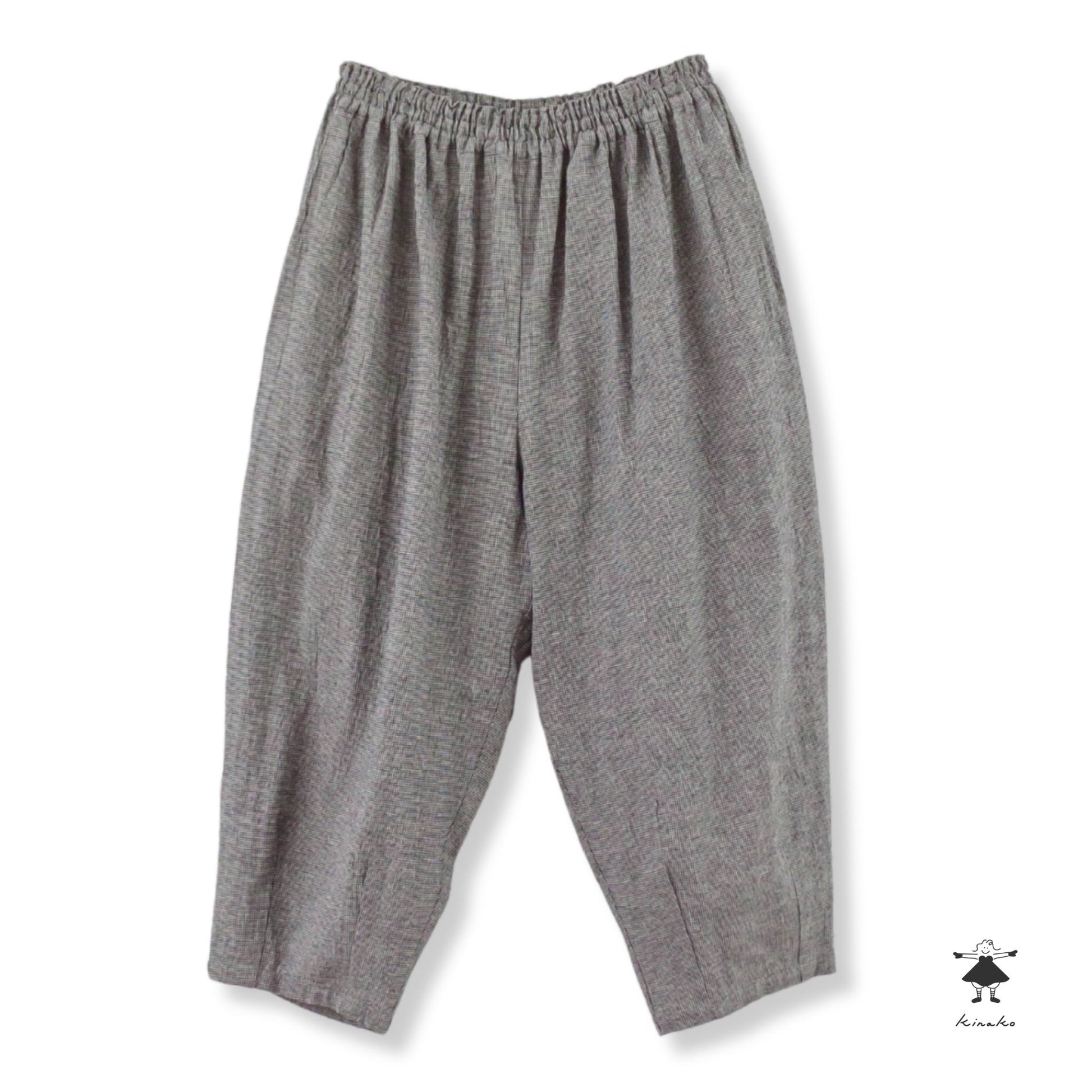 麻特有のサラっとした肌触りのある綿麻生地を使ったテーパードパンツです。裾口にダーツを入れて裾に向かって細くなるシルエットです。ウエスト総ゴムで穿きやすく、ゆったりとしたサイズ感がショート丈のトップスと相性良くコーディネイトできます。