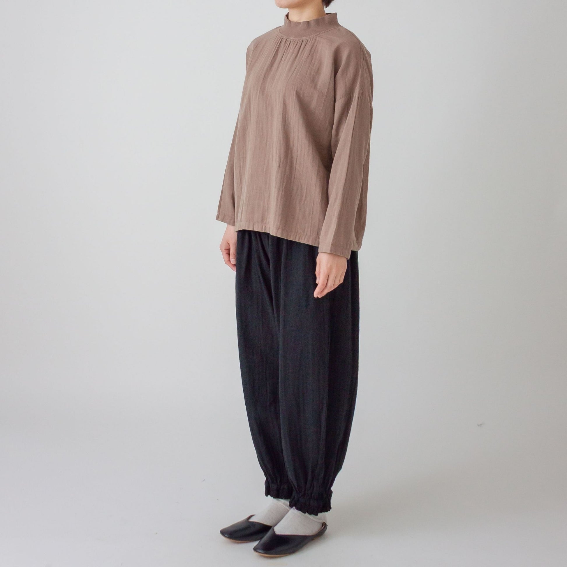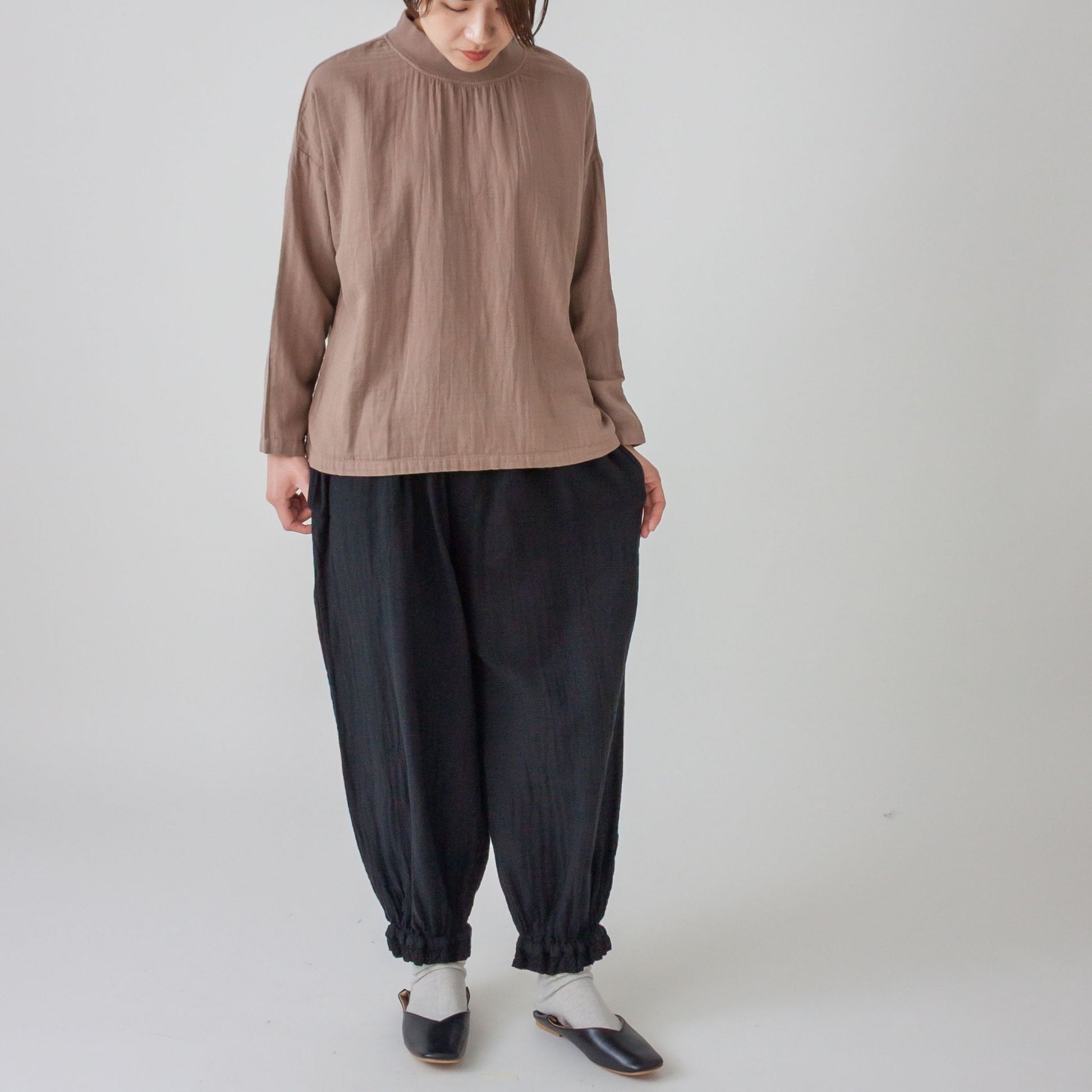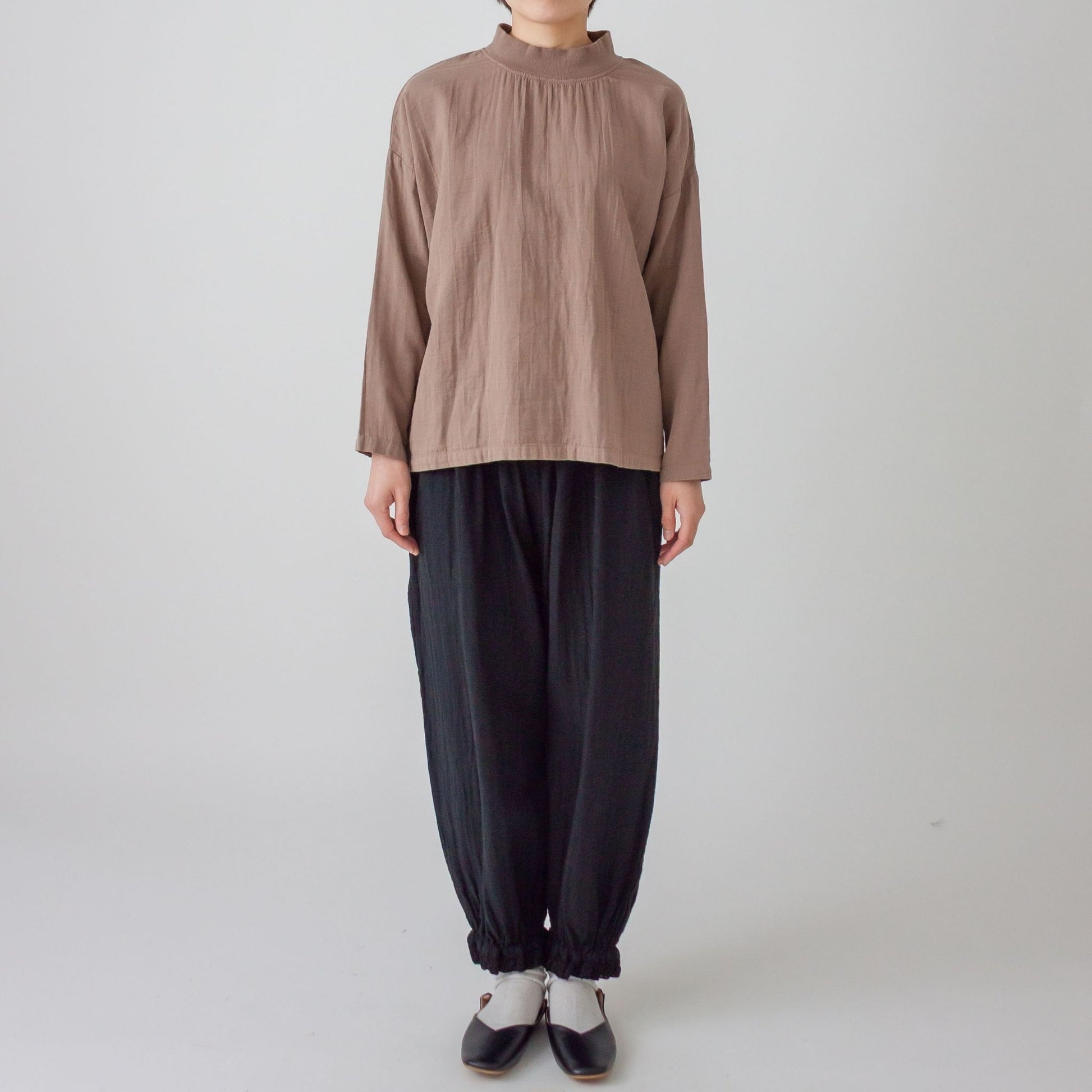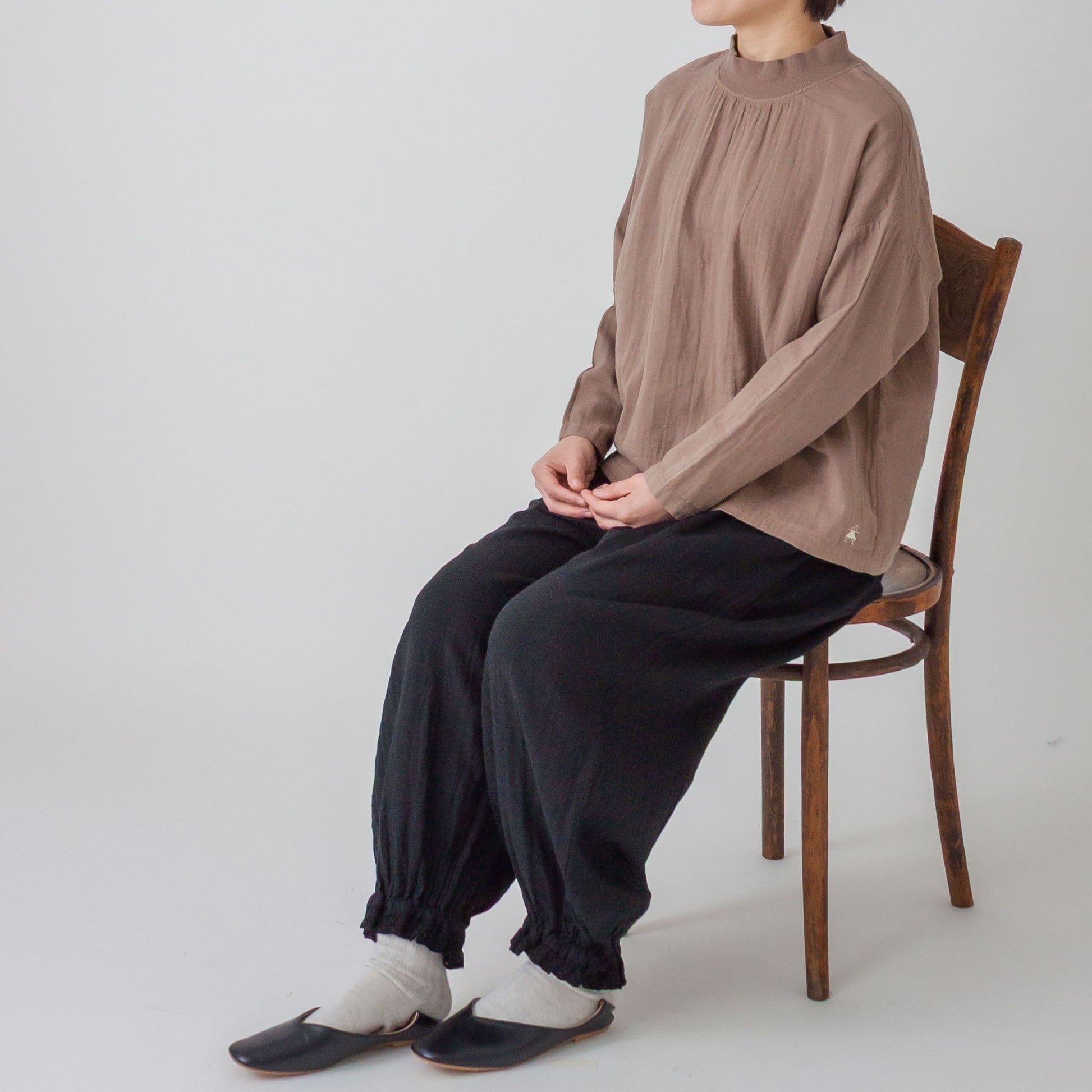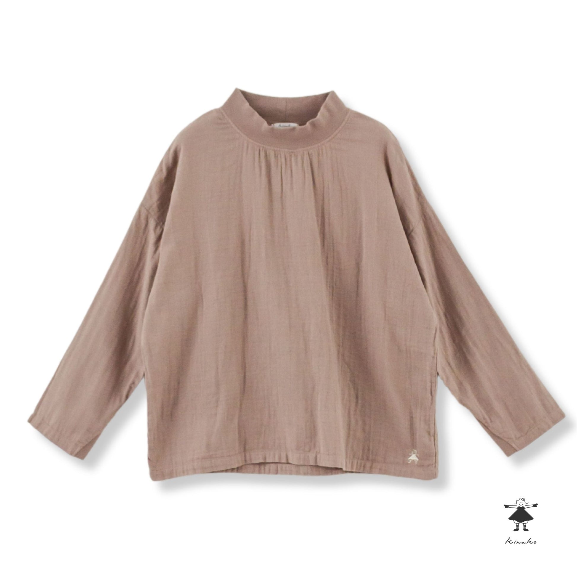 少し高めのリブ衿がポイントのプルオーバーです。昨年好評でした商品に、より着やすく改良を加えた袖口のリブ使いが特徴です。左裾にきなこちゃん刺しゅう有り。