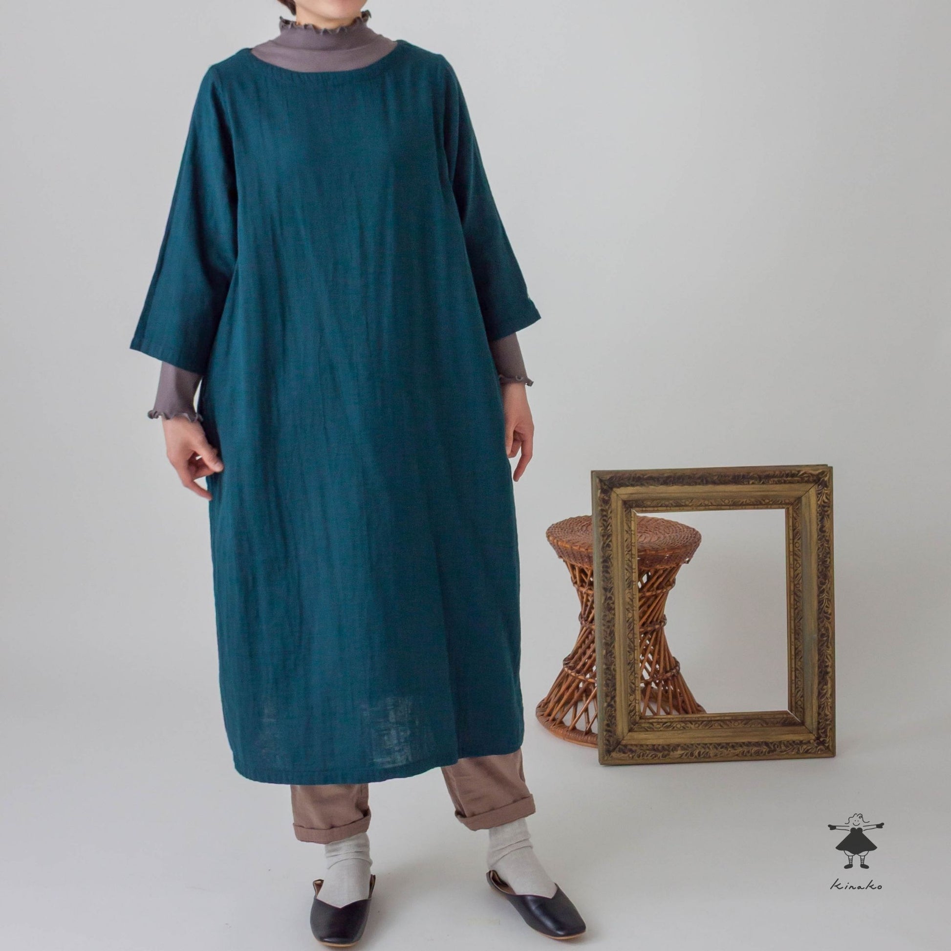 ダブルガーゼ七分袖ワンピース