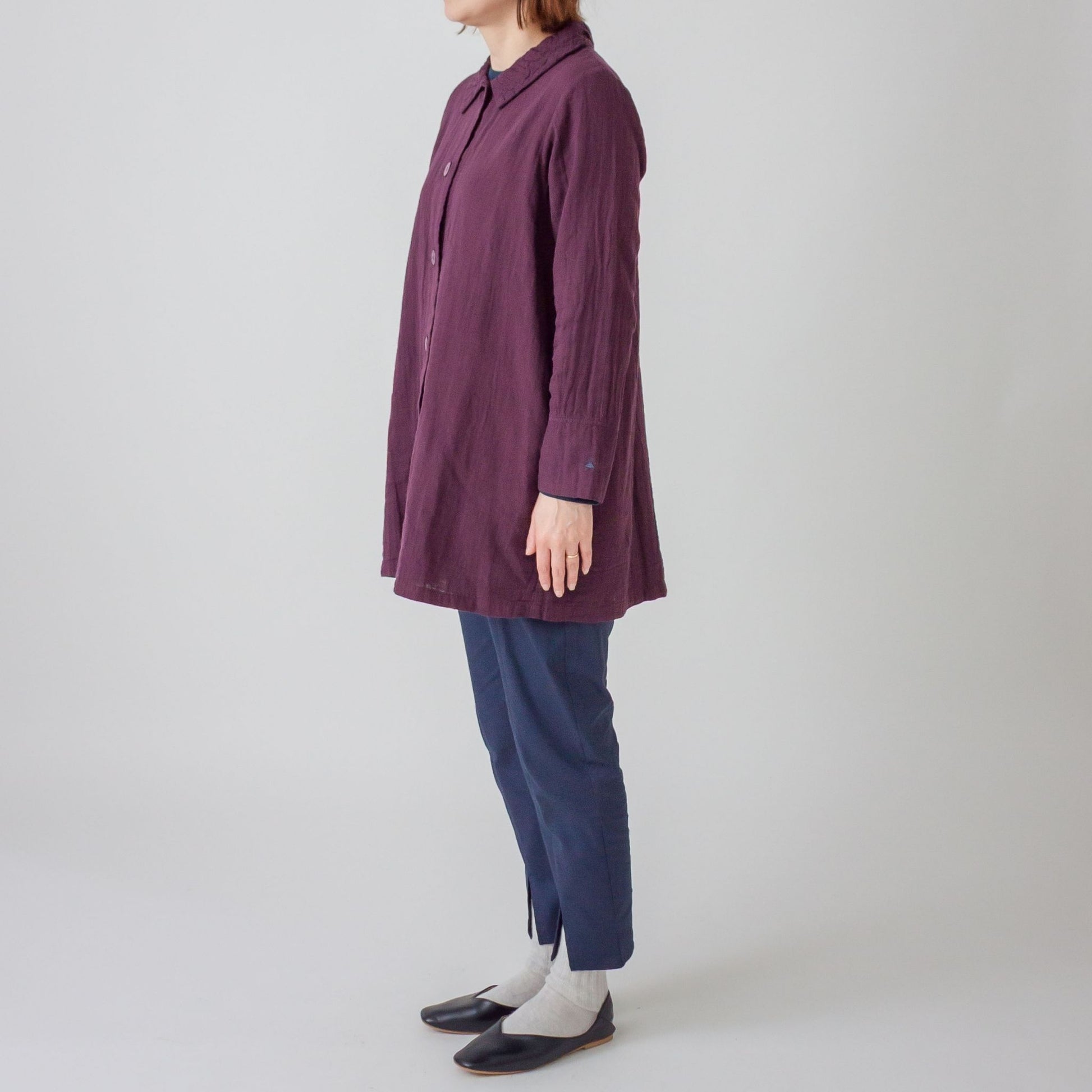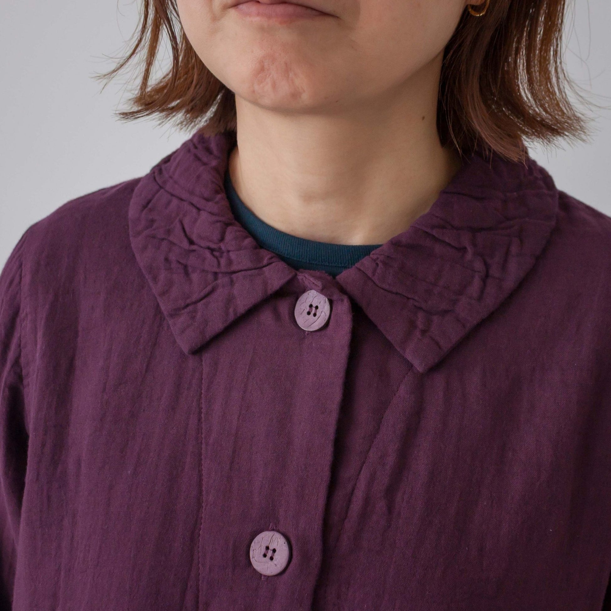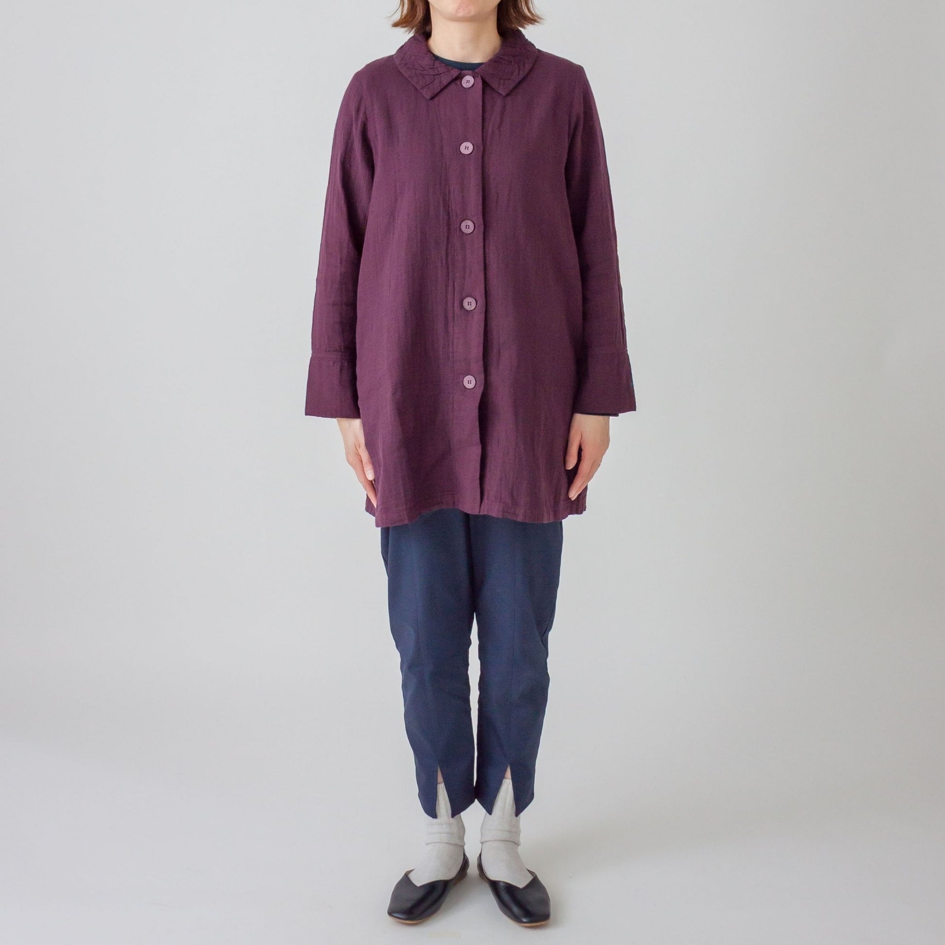 ダブルガーゼ衿ギャザーハーフコート