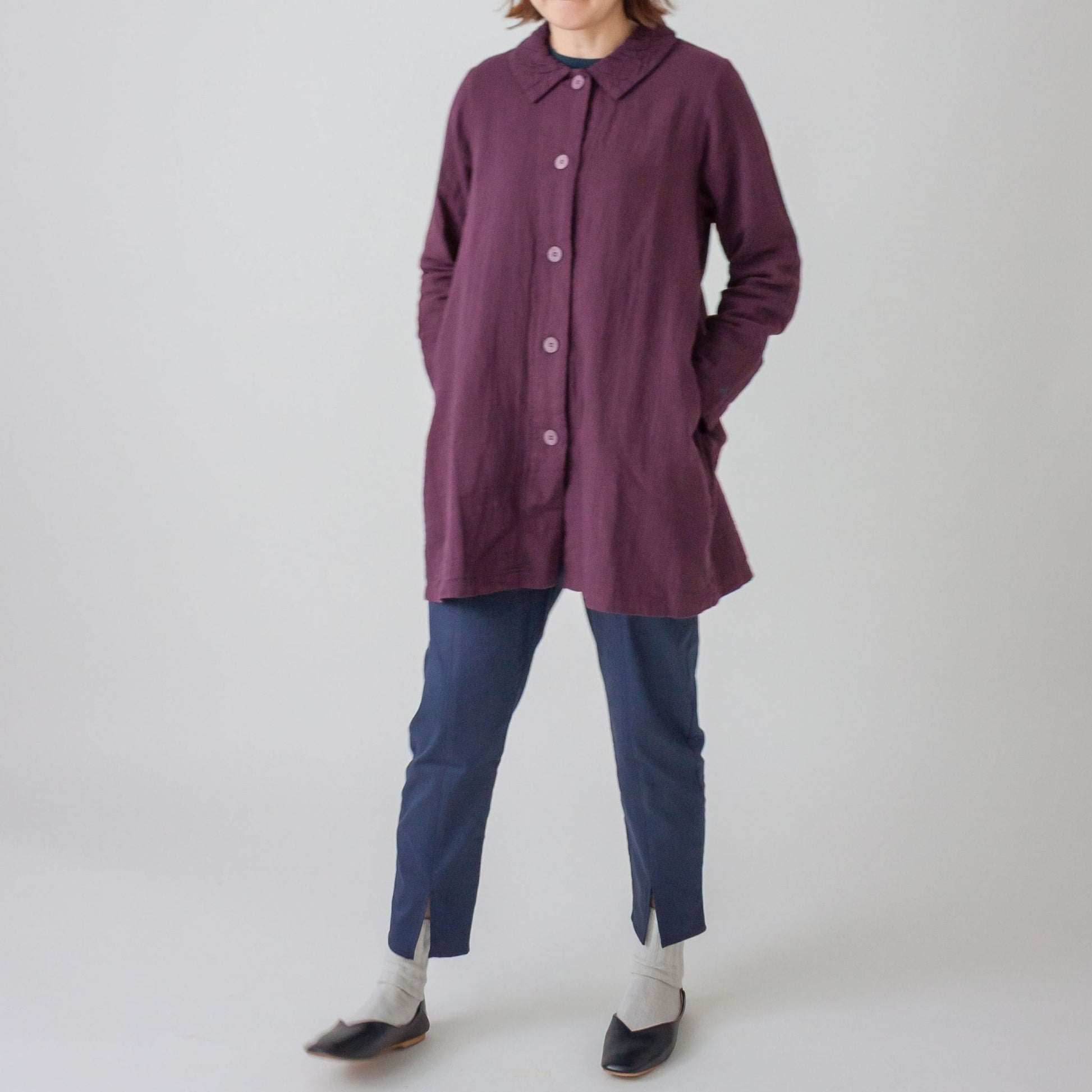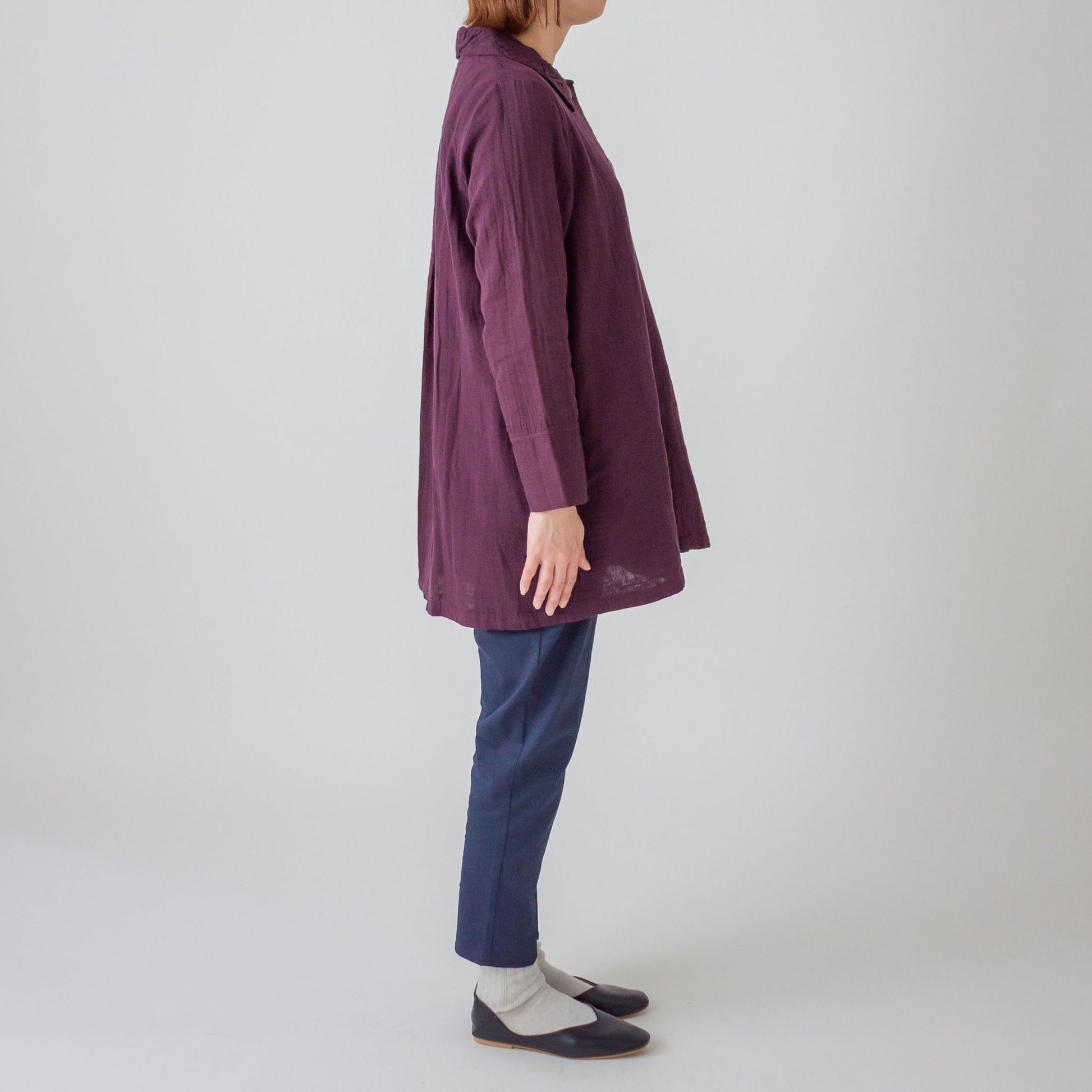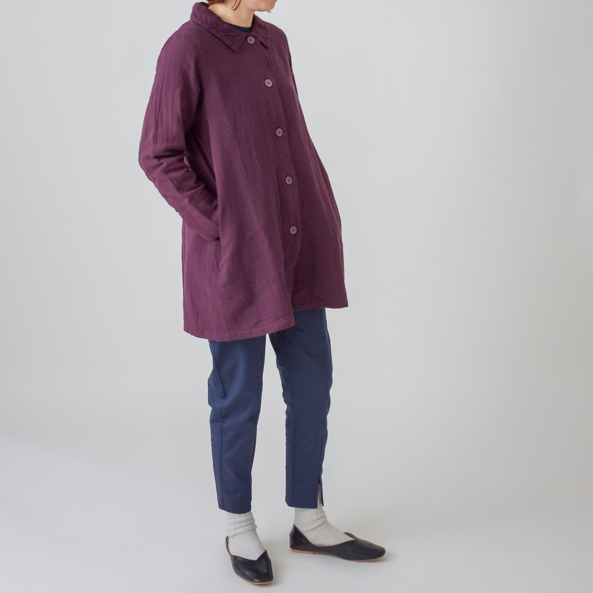 ダブルガーゼ衿ギャザーハーフコート