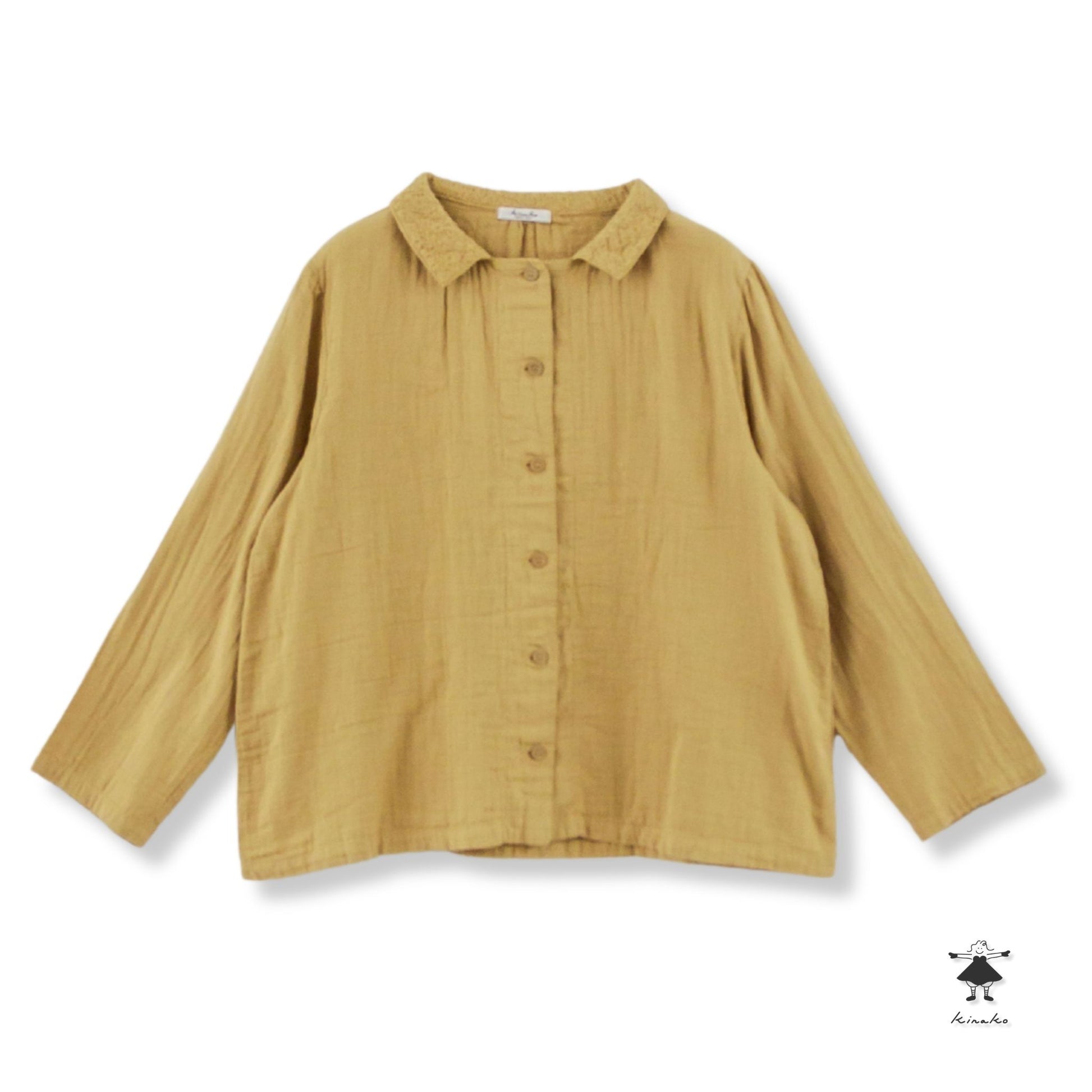 ダブルガーゼ衿刺しゅうスクエアーブラウス
