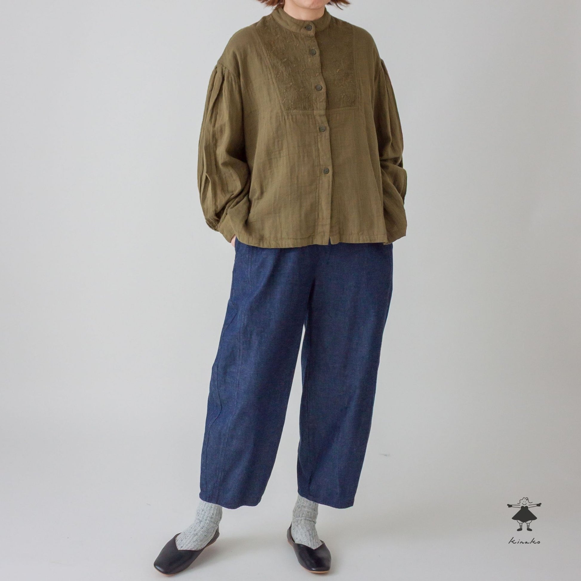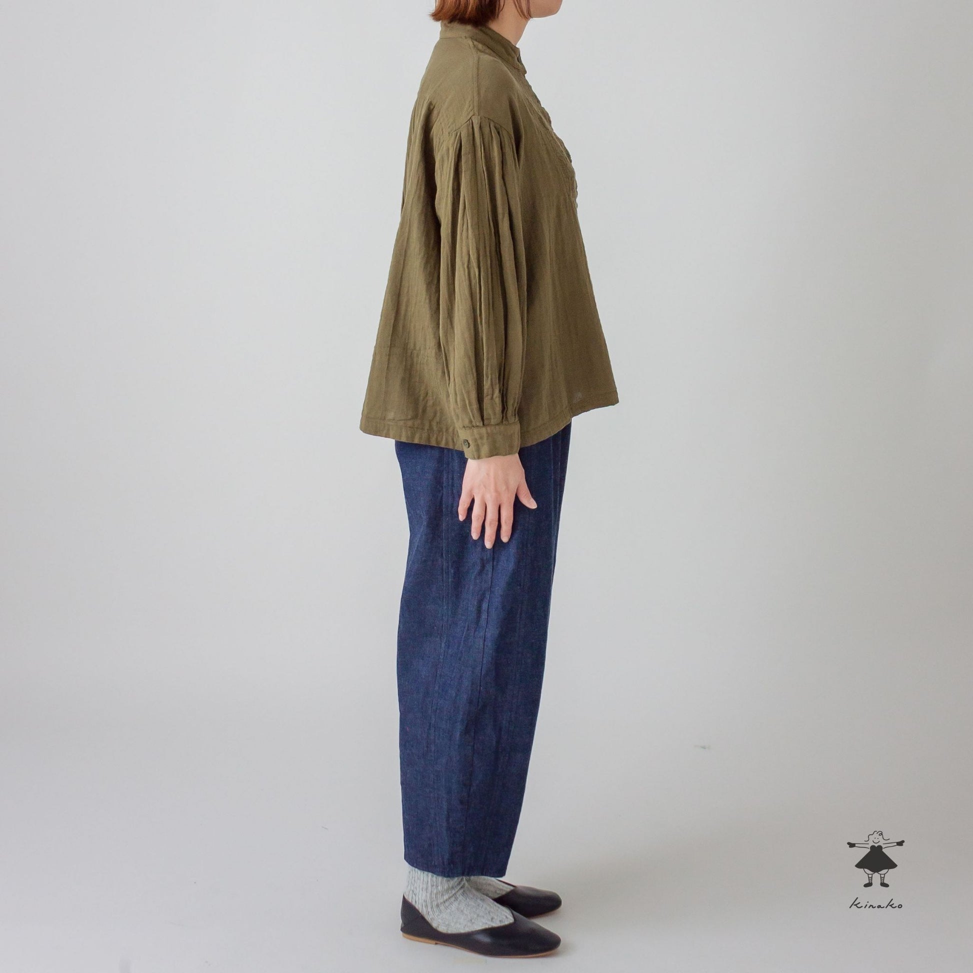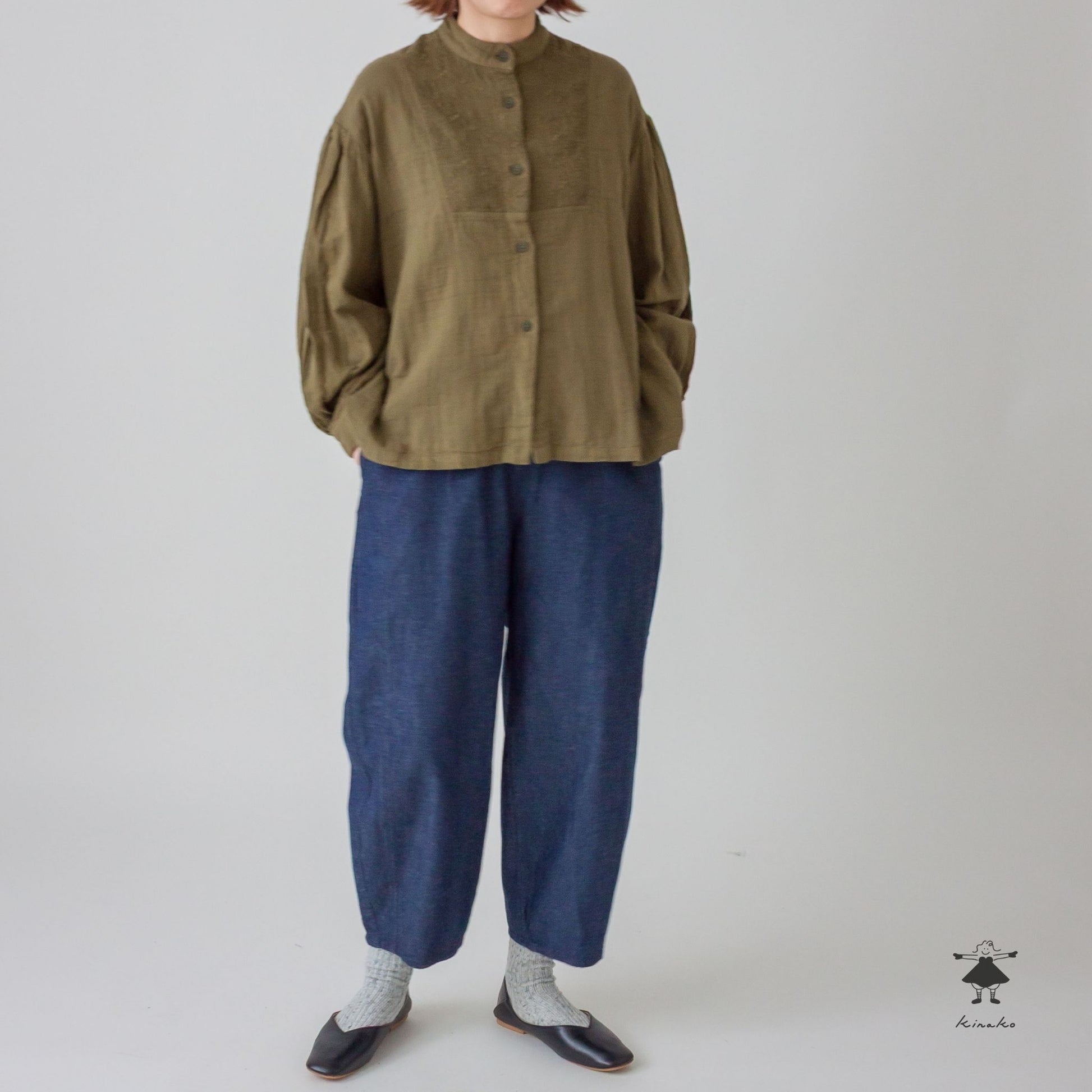 両サイドを切替え丸いシルエットにデザインしたコクーンパンツです。縦の切り替えによりスッキリとしたシルエットに仕上げました。