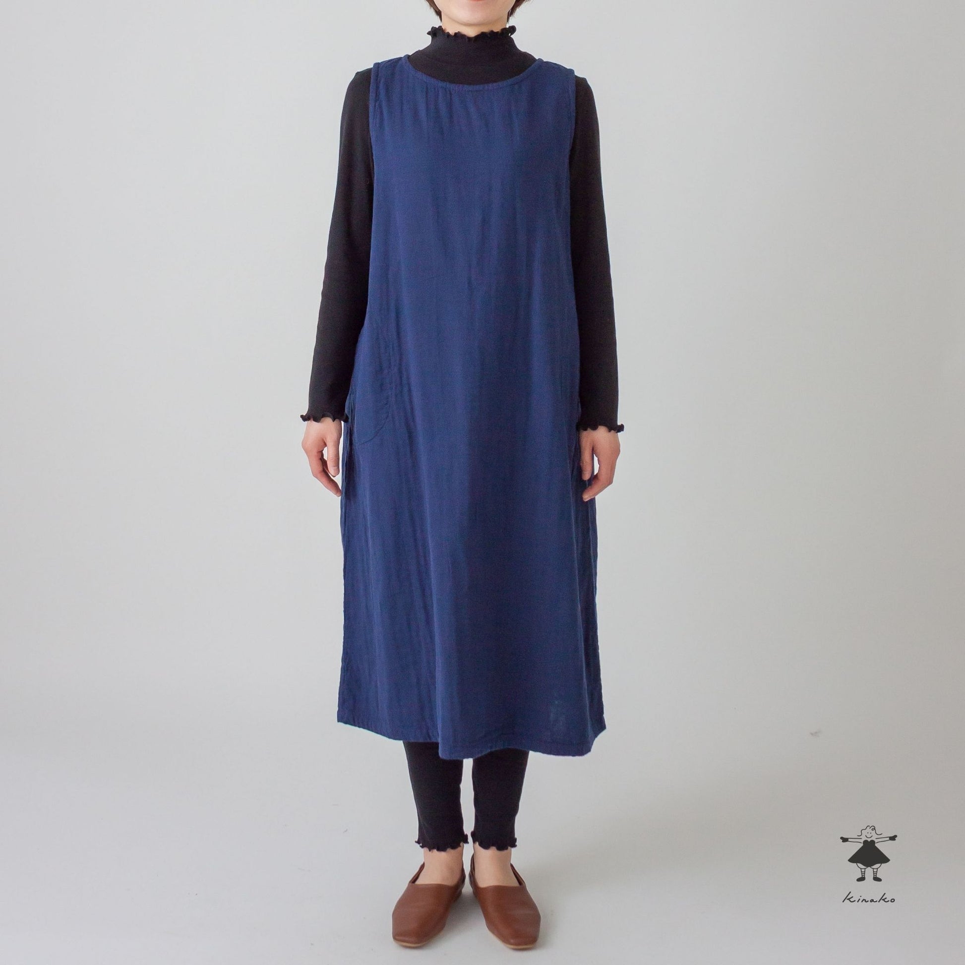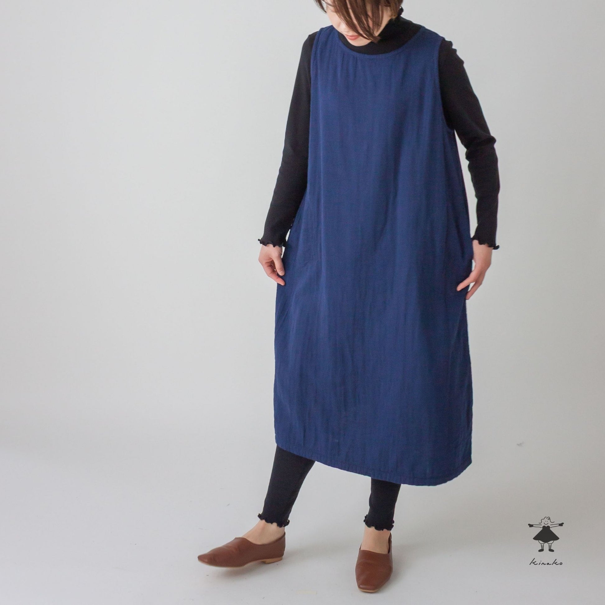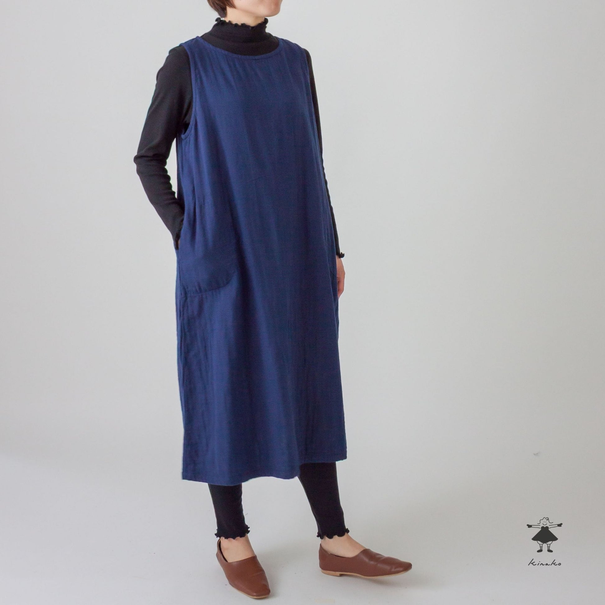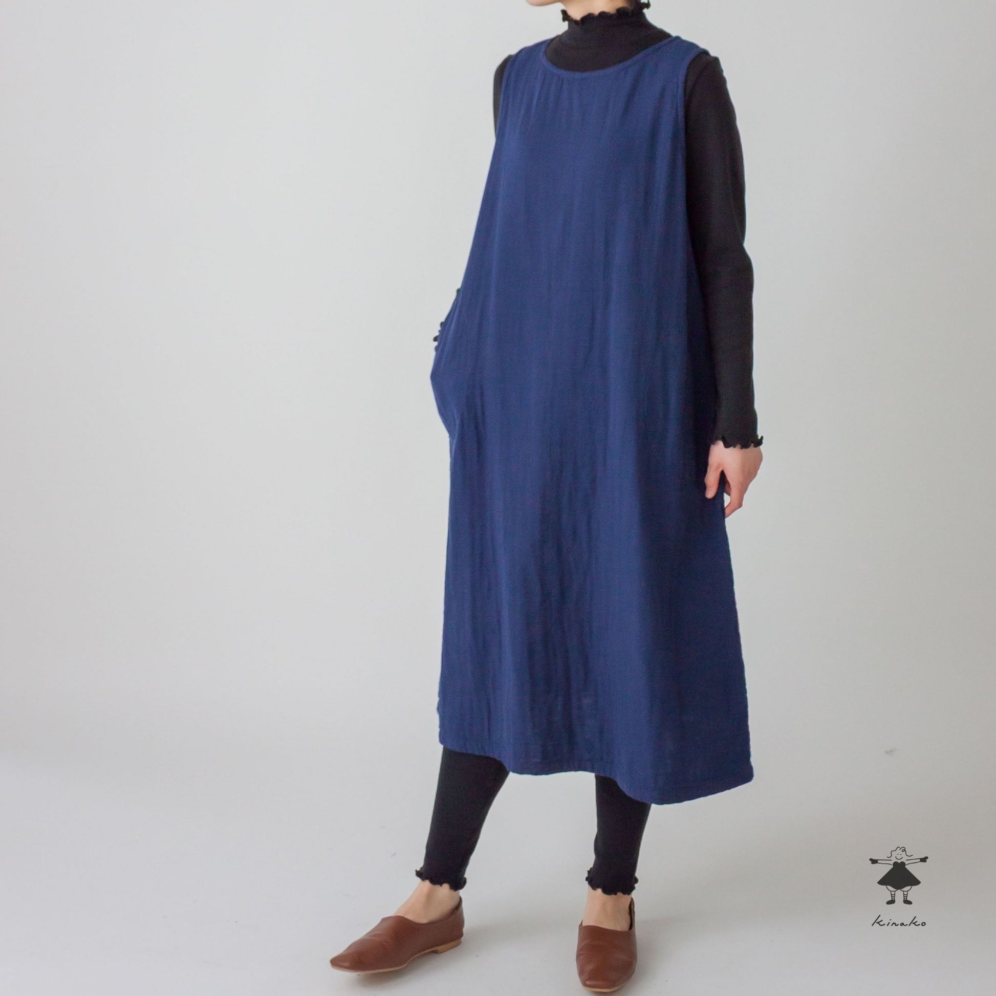 丸衿の形とスッキリとしたシルエットに拘った、シンプルなジャンパースカートです。トリプルガーゼのふっくらとした肌触りが特徴です。着まわしやすく普段使いしやすい商品です。