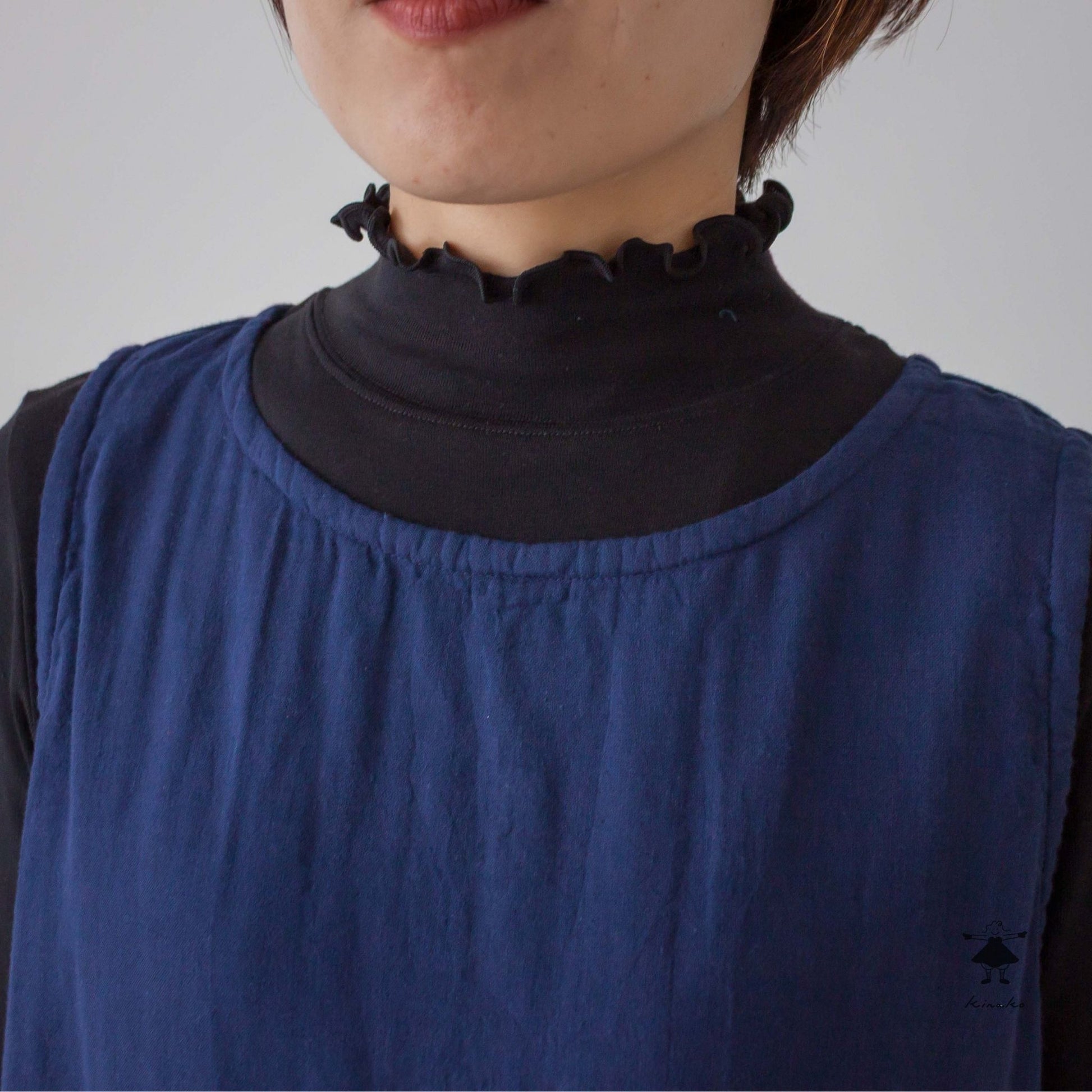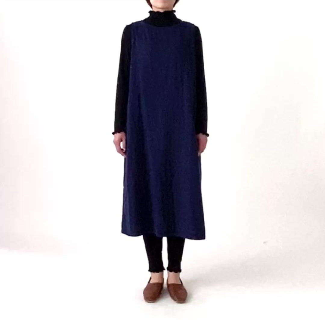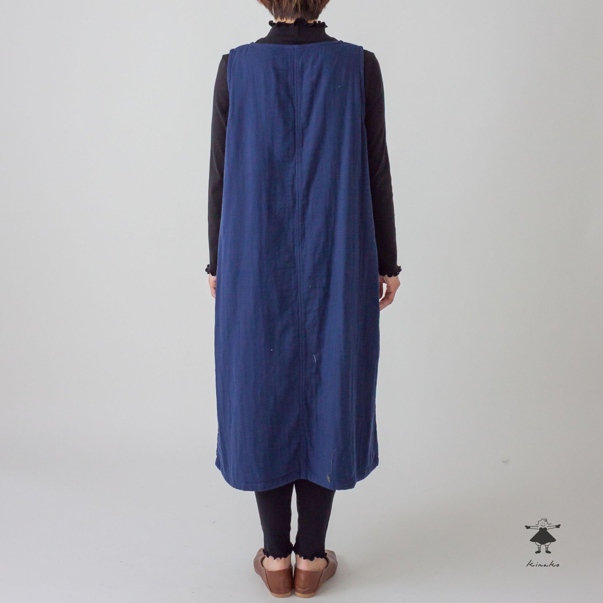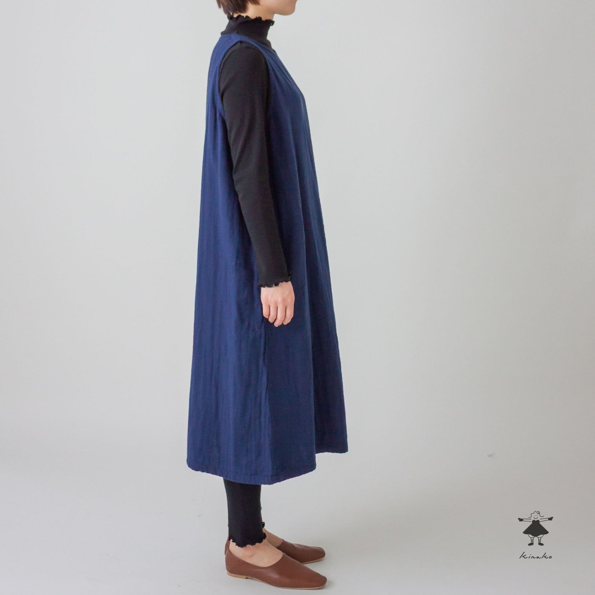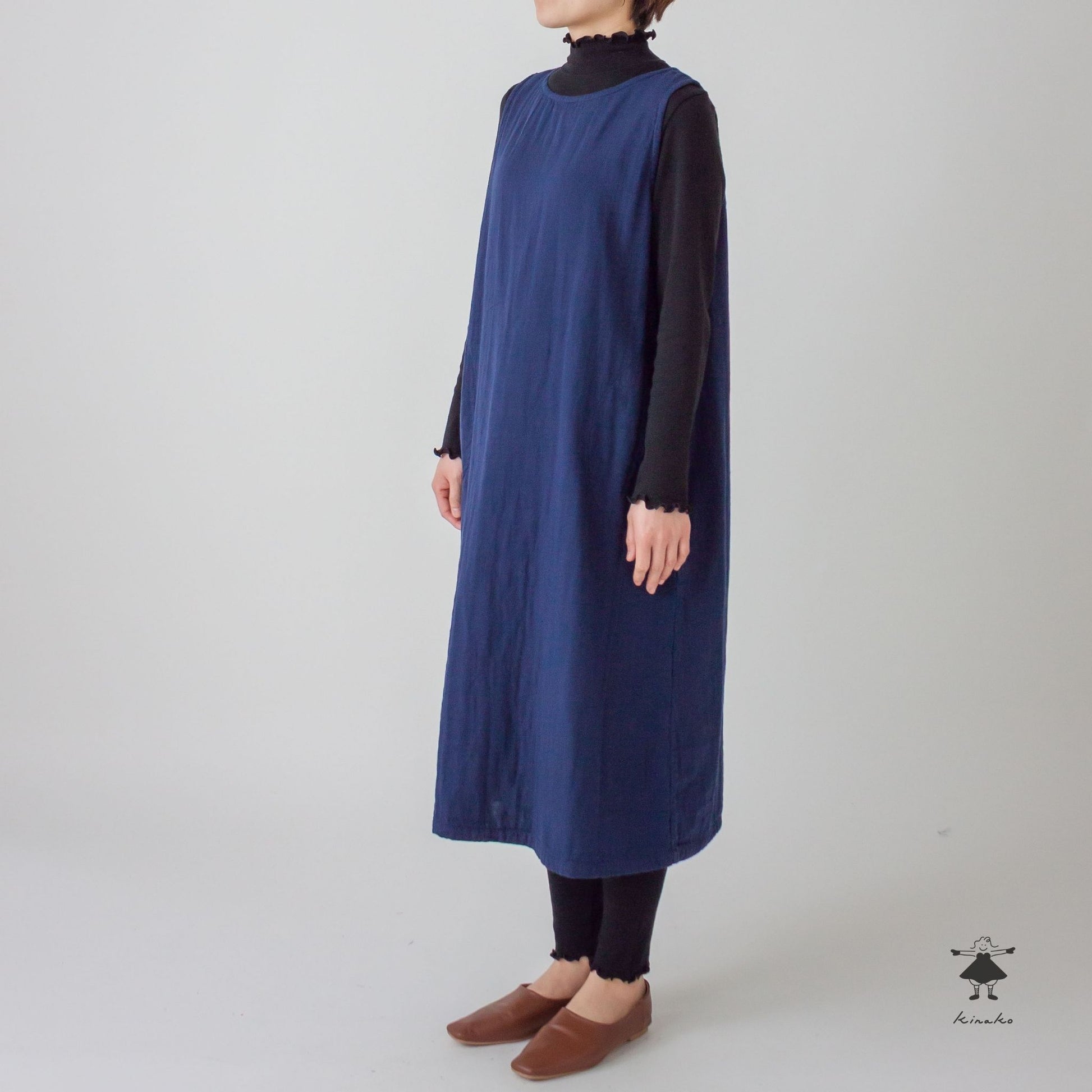 丸衿の形とスッキリとしたシルエットに拘った、シンプルなジャンパースカートです。トリプルガーゼのふっくらとした肌触りが特徴です。着まわしやすく普段使いしやすい商品です。