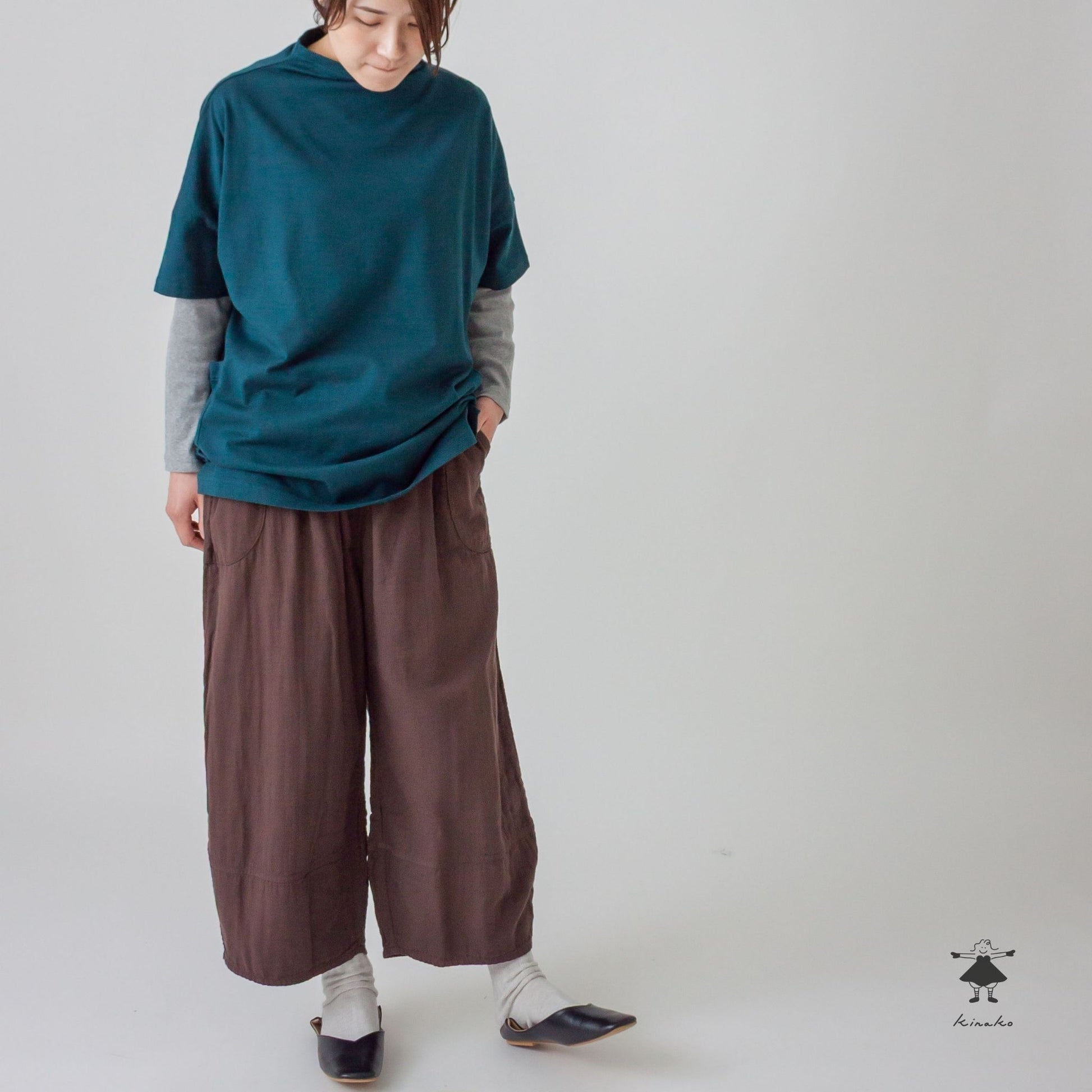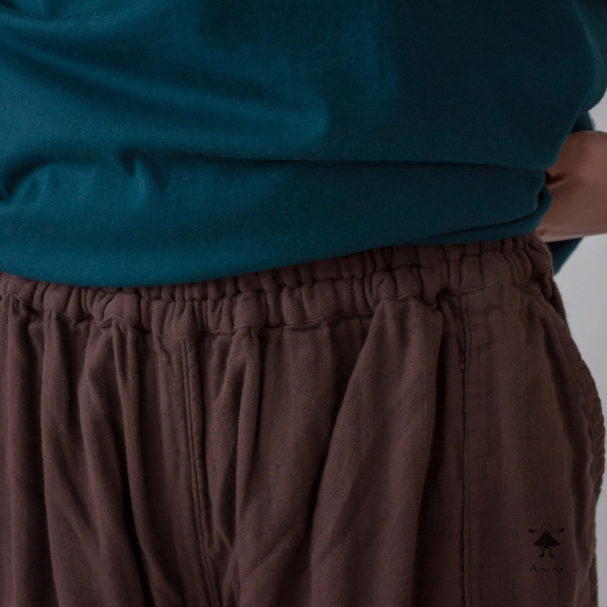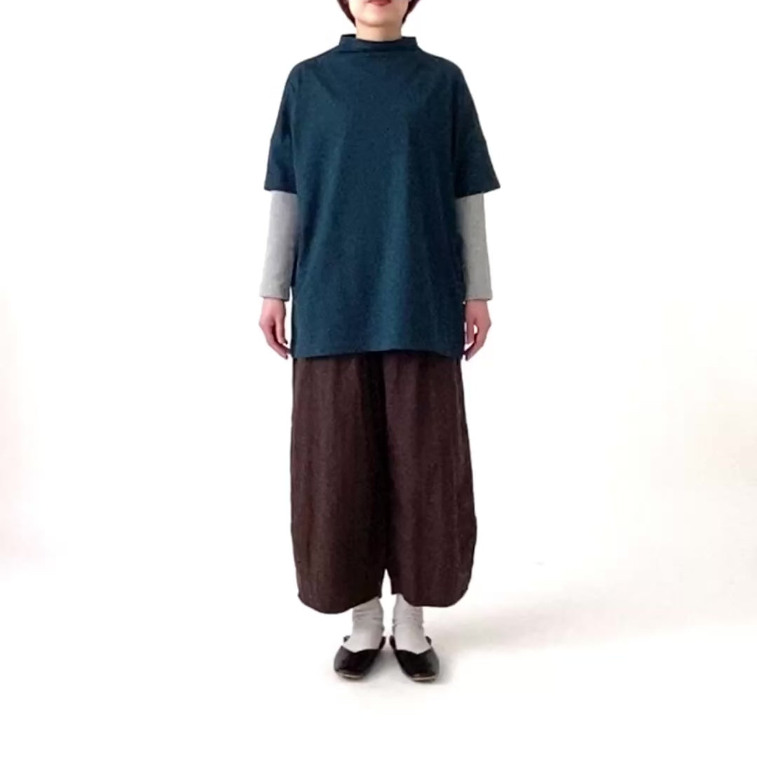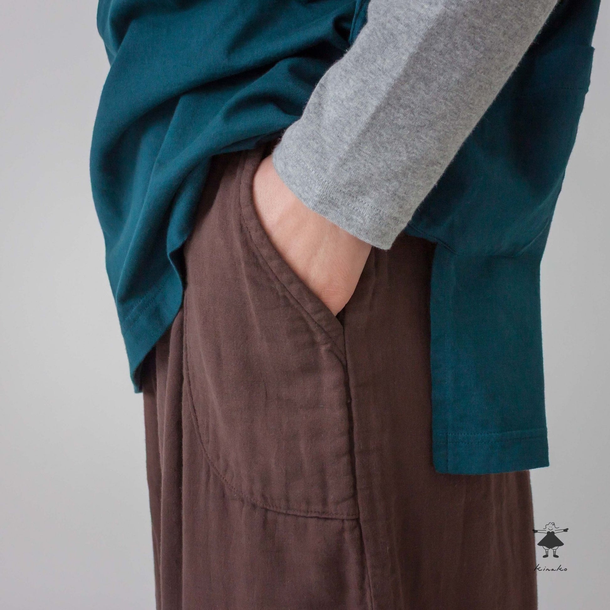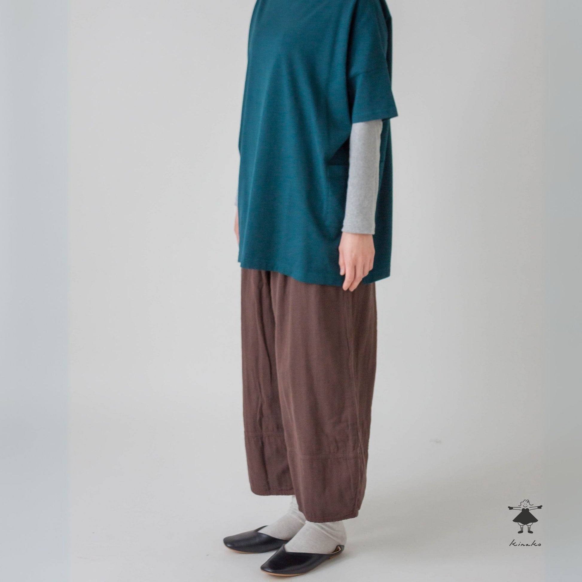 毎回好評のピエロパンツです。秋冬用にトリプルガーゼを使っています。丸いコクーンシルエットが特徴で、足元を軽く見せワンピースやチュニックとも相性の良い一着です。