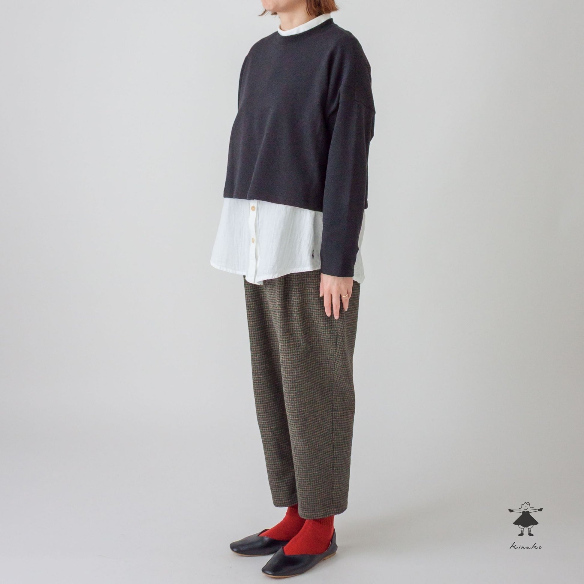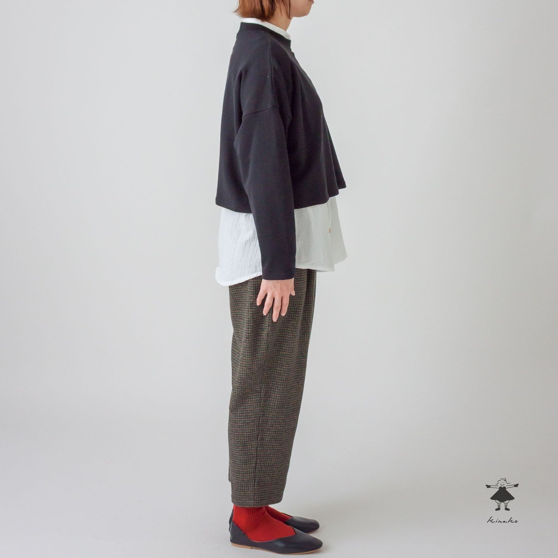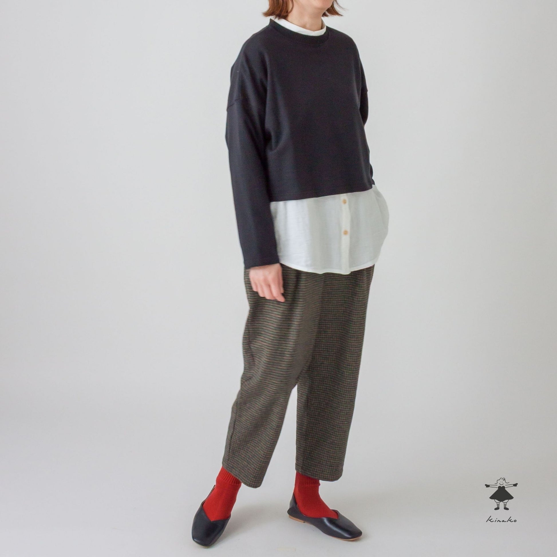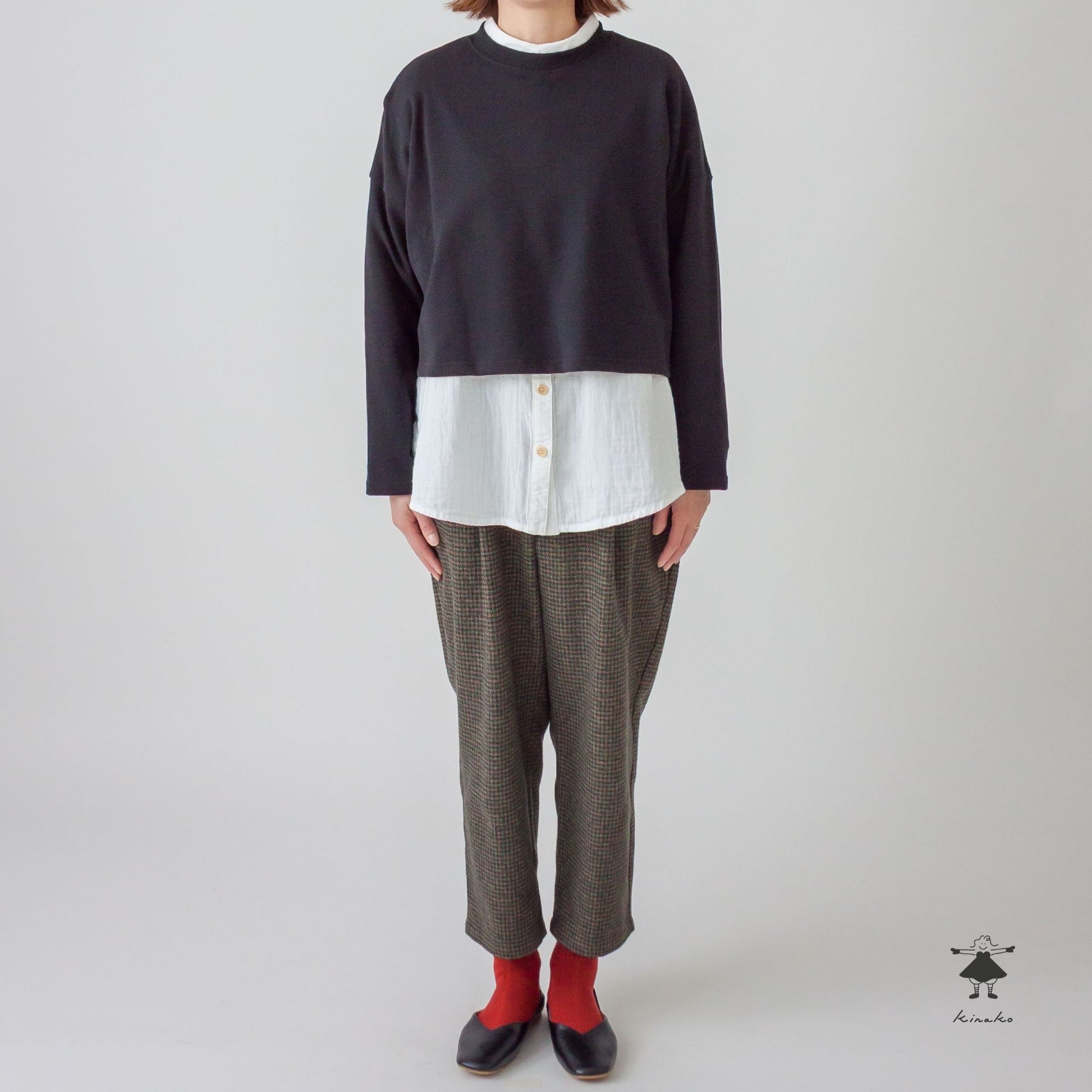 柔らかいミニパイル生地を使ったショート丈プルオーバーです。ベストの様に使う事ができ、着丈の長いワンピースやブラウスに重ねてコーディネイトして頂けます。