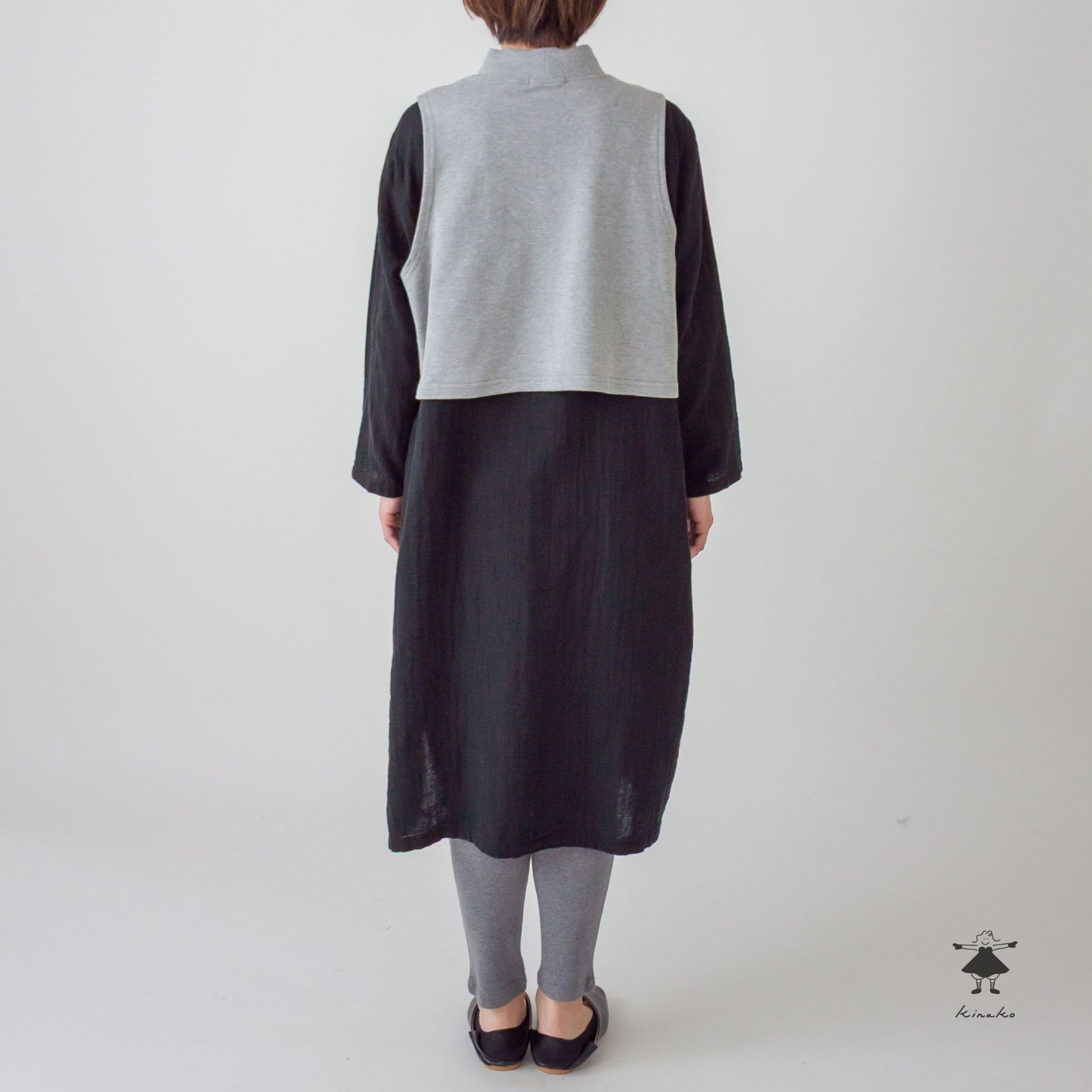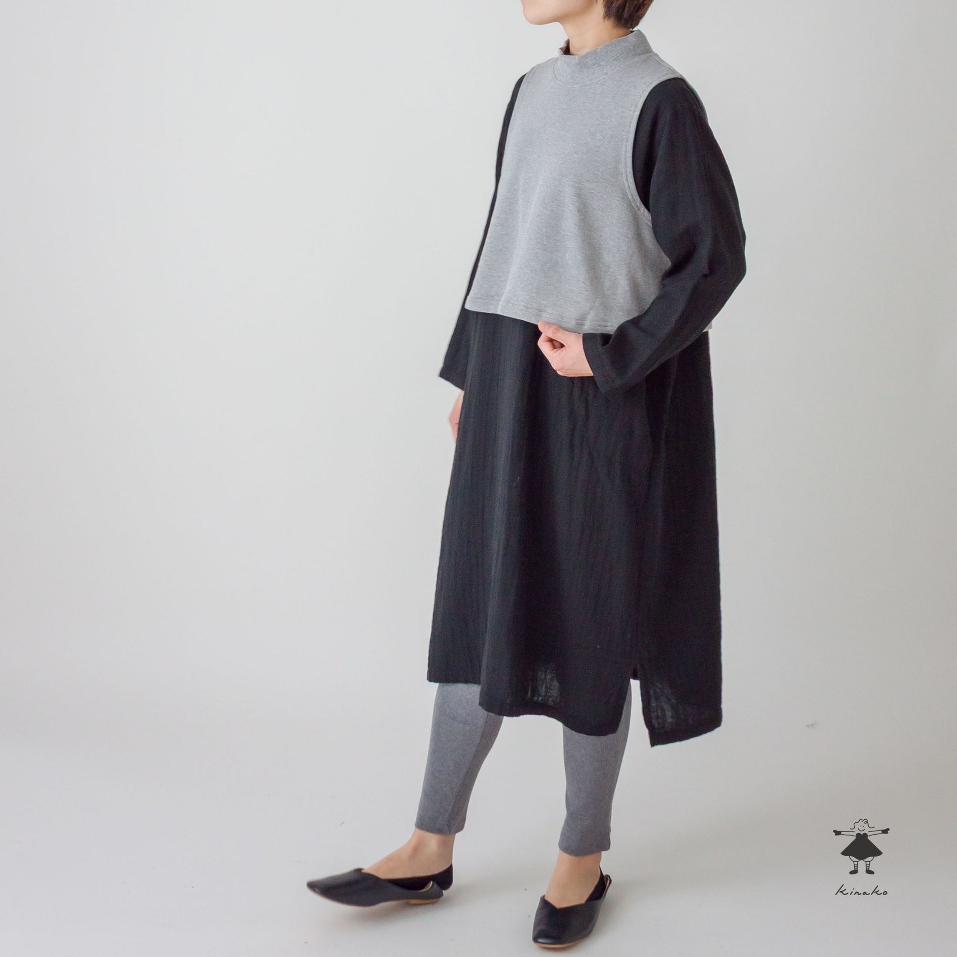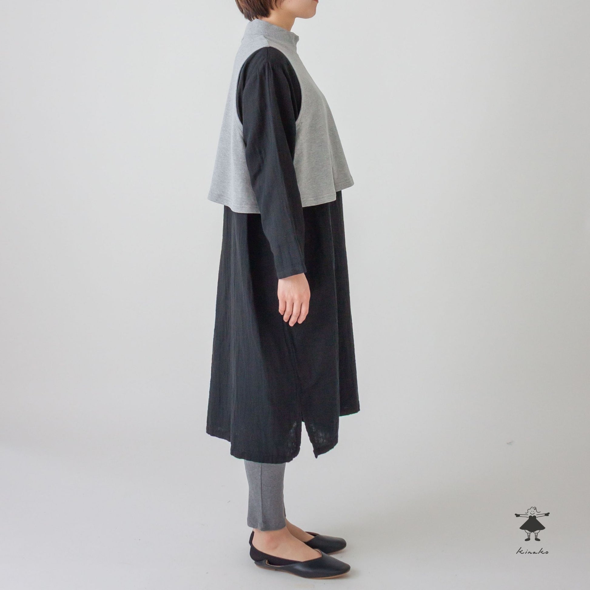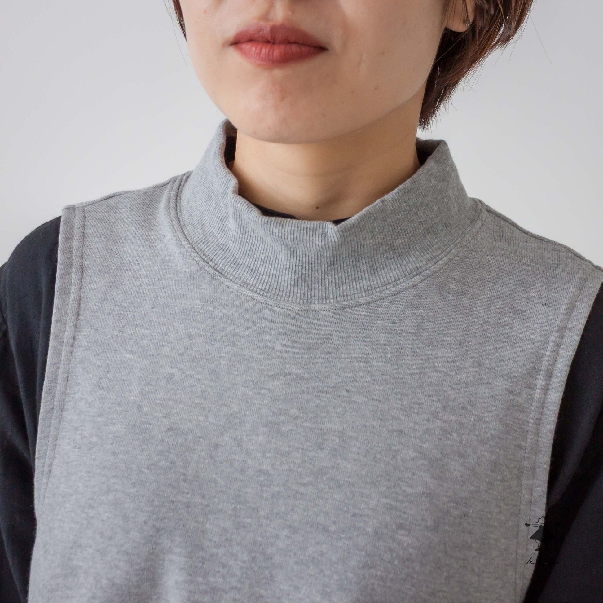 柔らかいミニパイル生地を使ったショート丈ベストです。フライス生地を使ったハイネックがポイントです。ワンピースやブラウスに重ねてコーディネイトして頂けます。