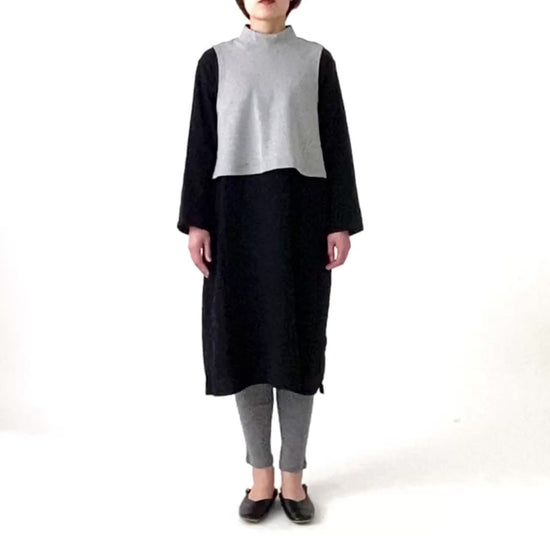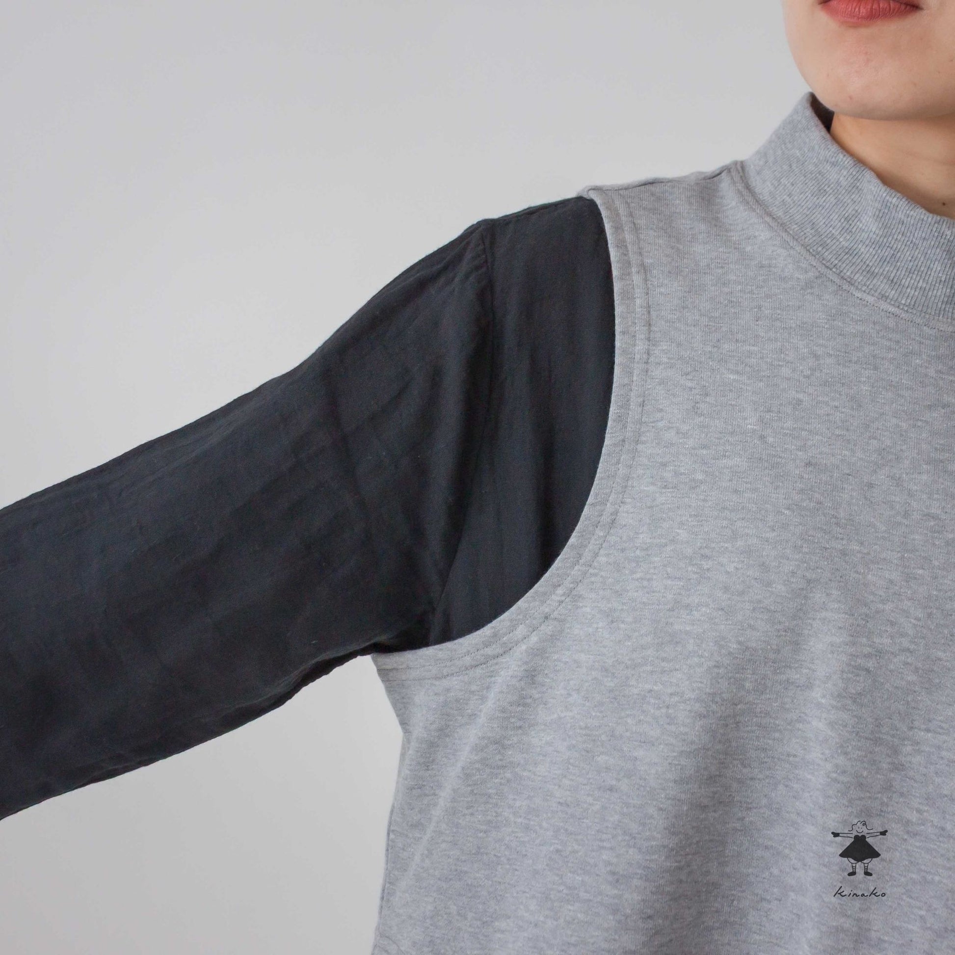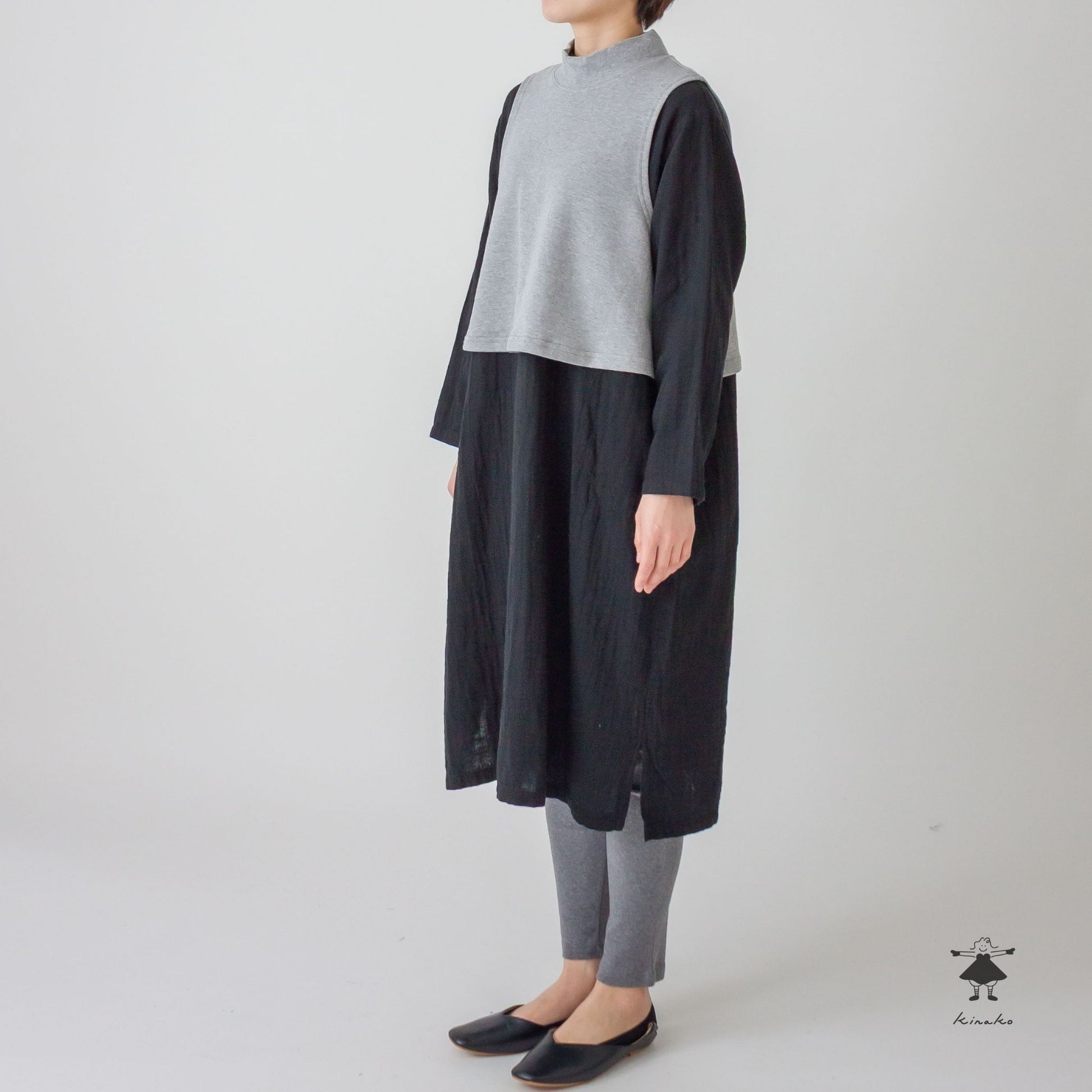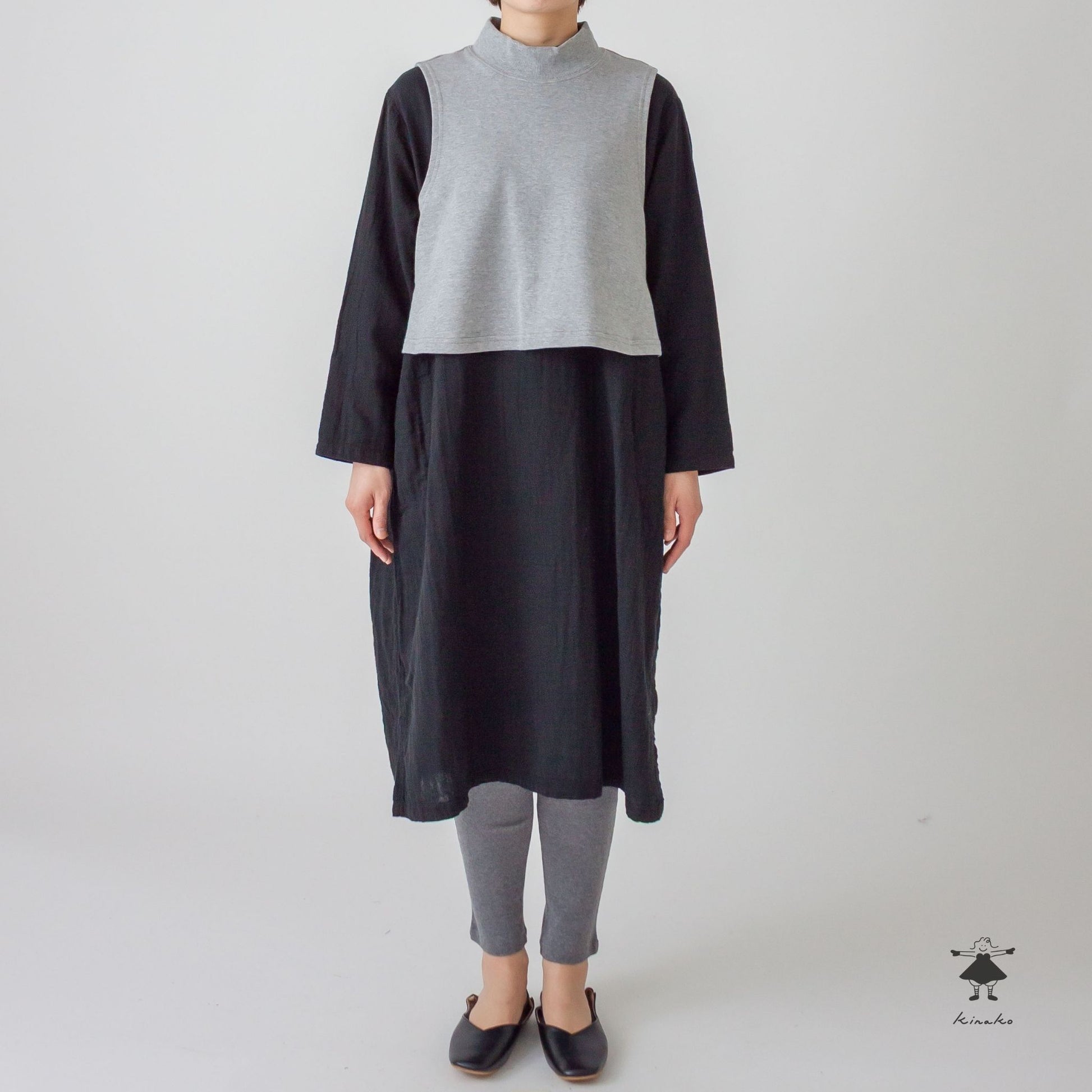 柔らかいミニパイル生地を使ったショート丈ベストです。フライス生地を使ったハイネックがポイントです。ワンピースやブラウスに重ねてコーディネイトして頂けます。
