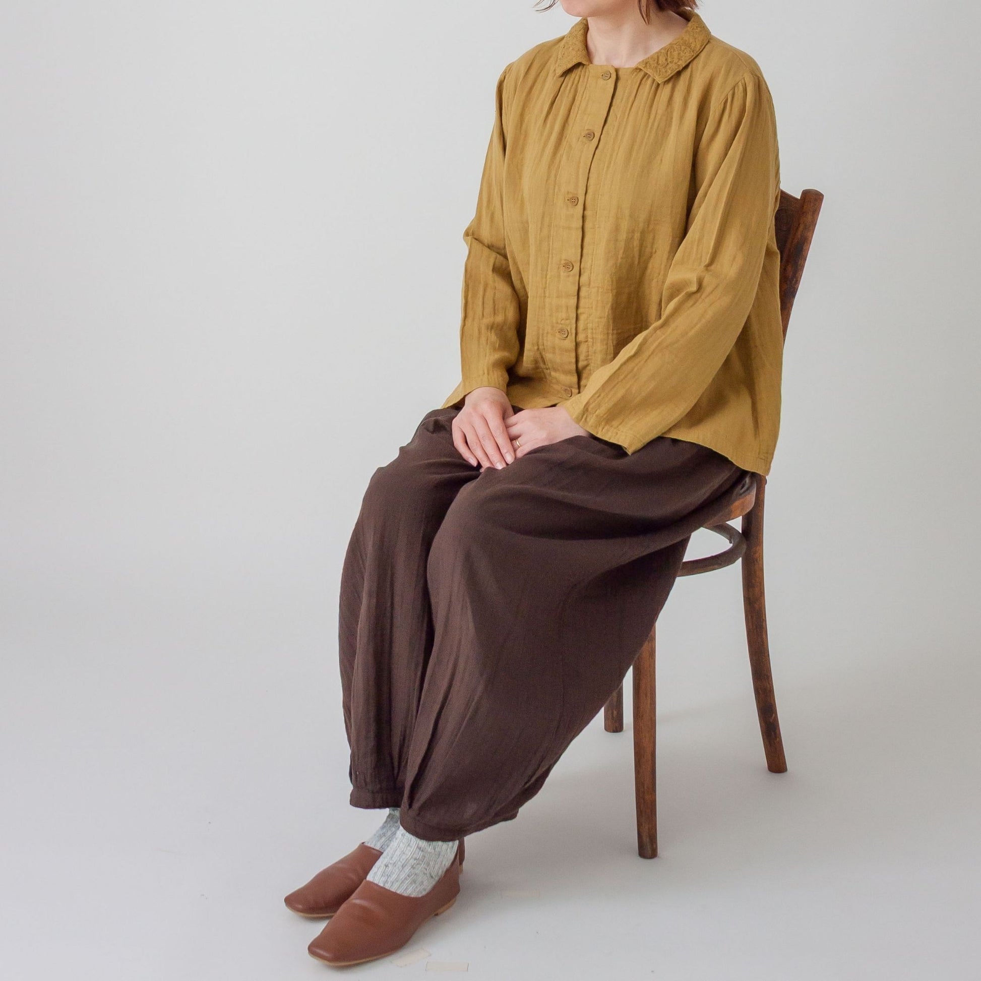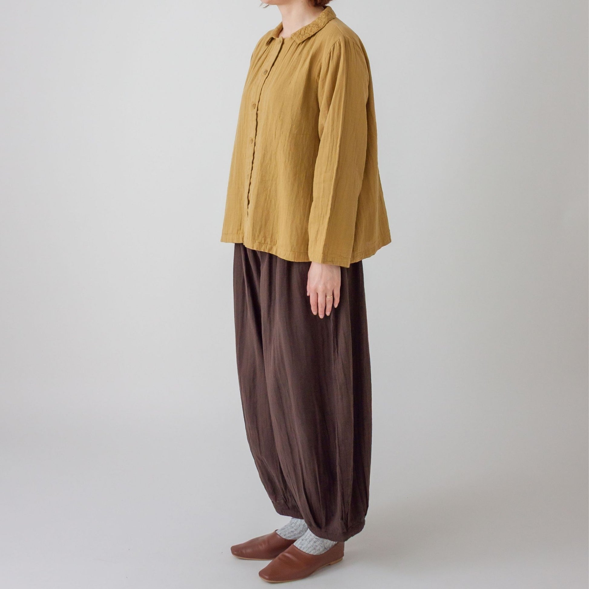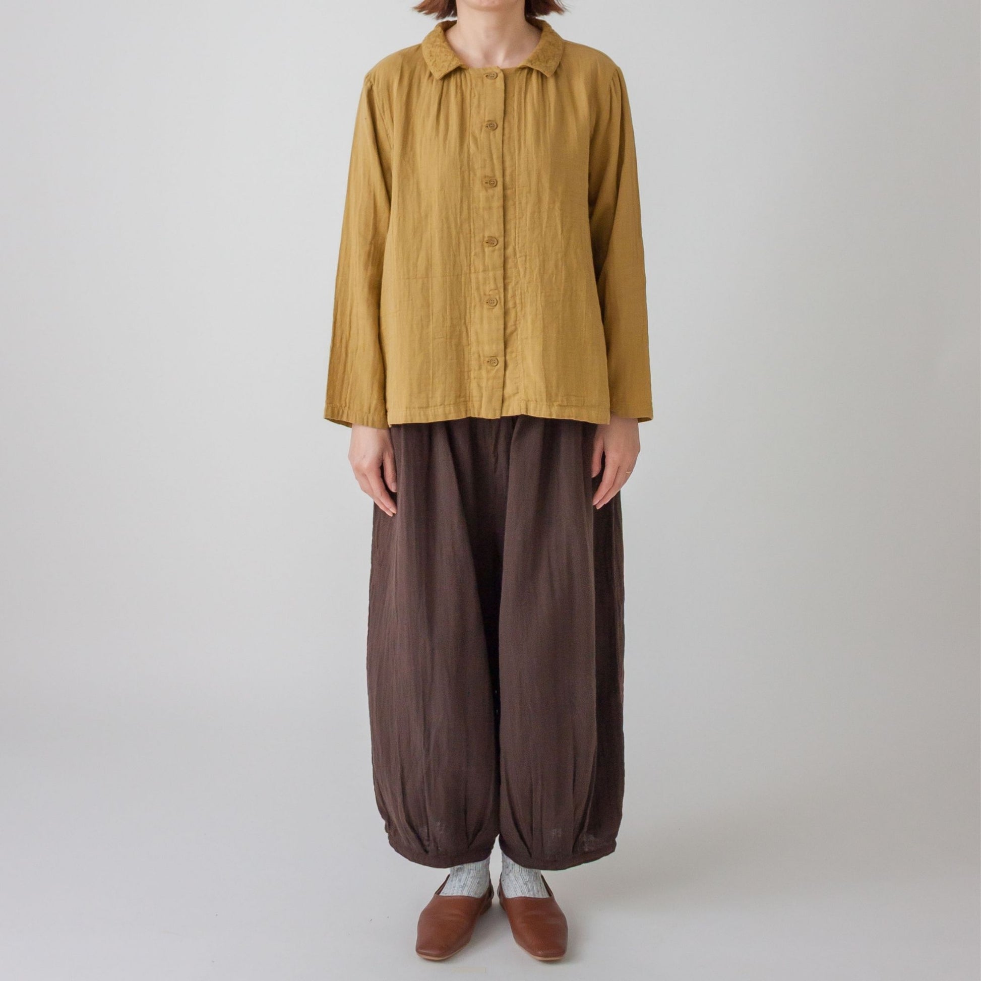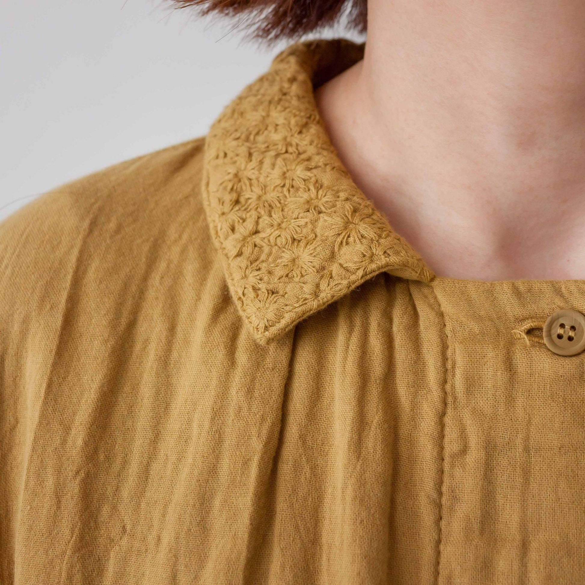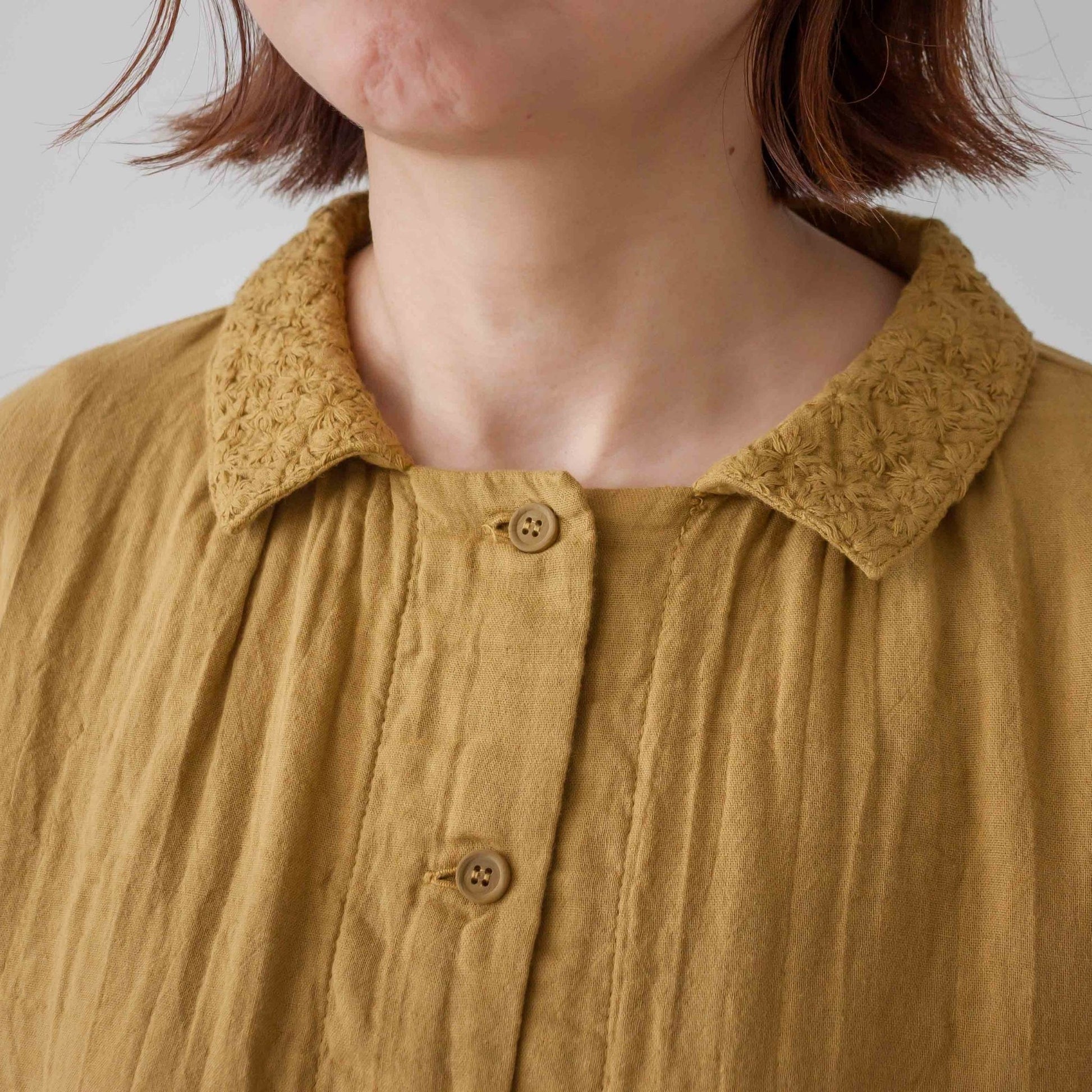 ダブルガーゼ衿刺しゅうスクエアーブラウス