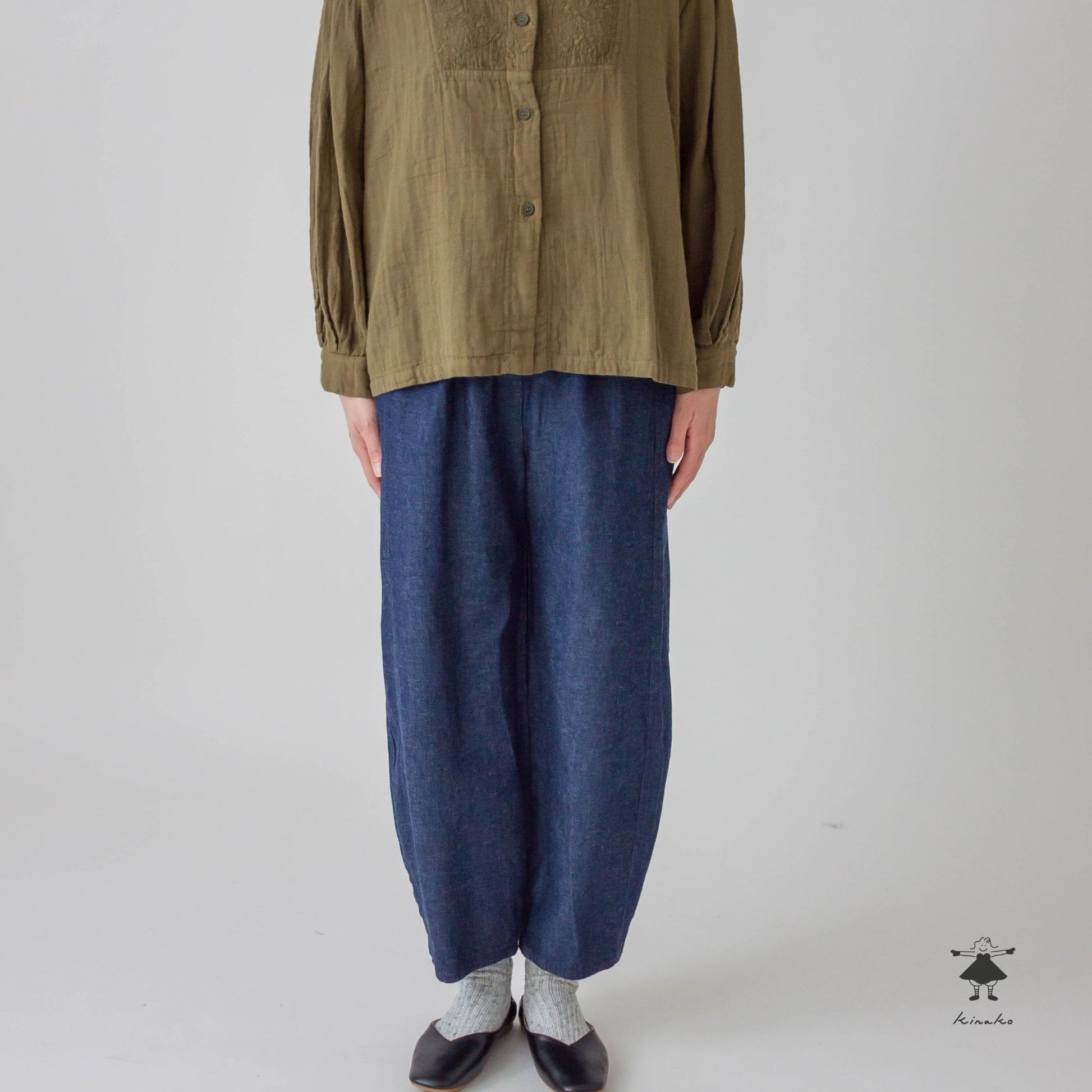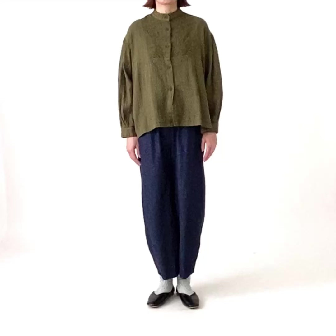 両サイドを切替え丸いシルエットにデザインしたコクーンパンツです。縦の切り替えによりスッキリとしたシルエットに仕上げました。